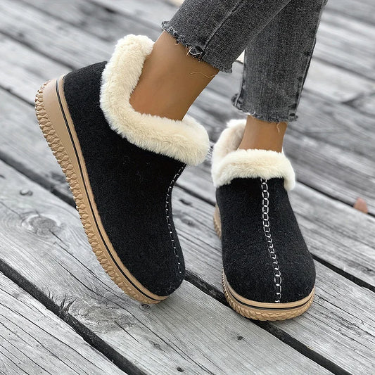 Stivali da neve slip-on con punta tonda, dettagli cuciti e finiture in pelliccia sintetica