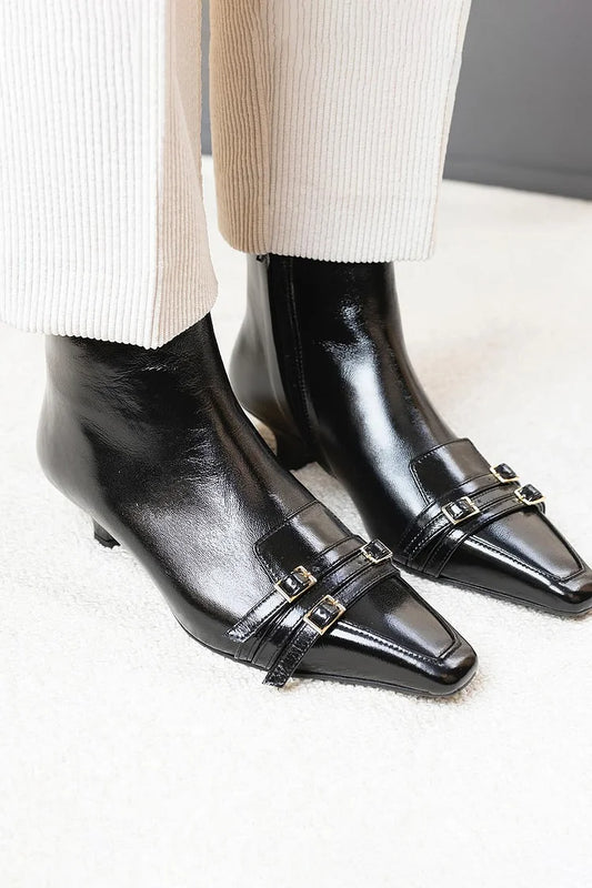 Cinturini Fibbie Decorazione Punta Quadrata Tacco Nero Stivali [Pre-Ordine]