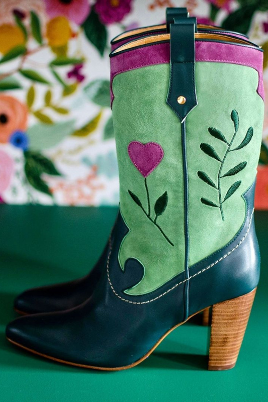Stivali da cowboy ricamati con cuore verde [Pre-ordine]