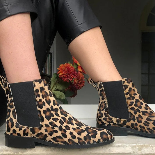 Stivali beige con punta a punta e tacco grosso, stampa leopardata [Pre-ordine]