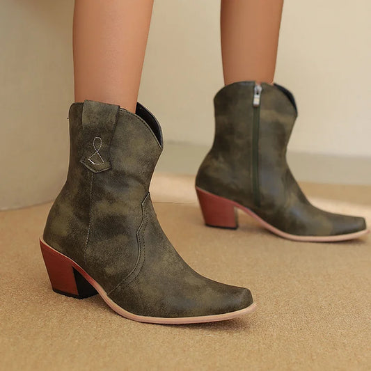 Stivali western con cerniera, punta affilata e tacco spesso patchwork