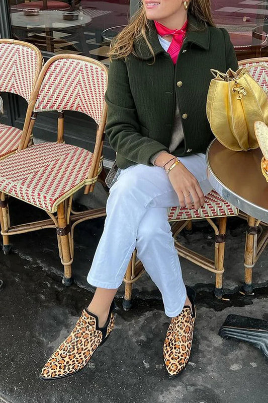 Stivaletti alla caviglia gialli con punta affilata e borchie metalliche con stampa leopardata [Pre-ordine]