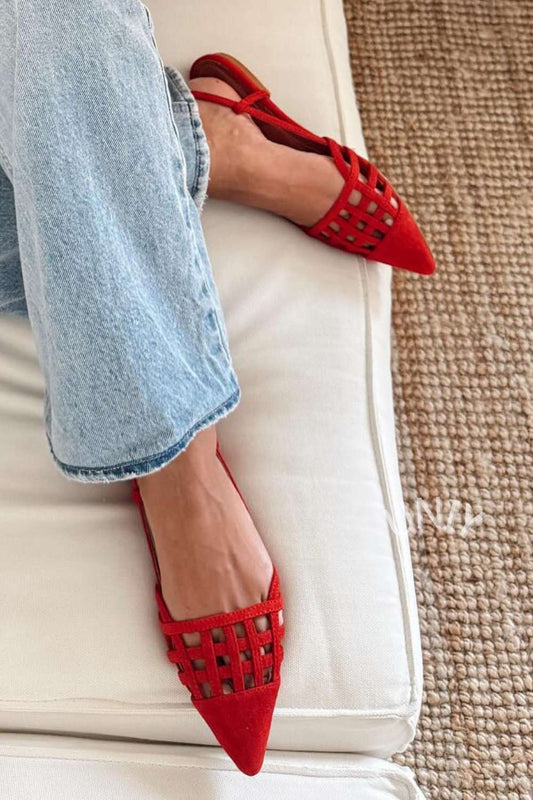 Ballerine Dorsay a punta in pelle scamosciata rossa con cinturino alla caviglia [Pre-ordine]