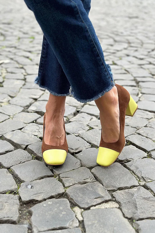 Tacco spesso con punta quadrata e patchwork colorblock in finta pelle scamosciata opaca