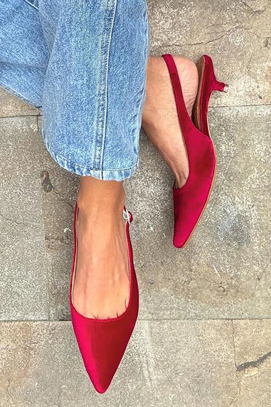 Slingback Strap Buckle Punta Aguzza Tacco Kitten Rosso [Pre-Ordine]