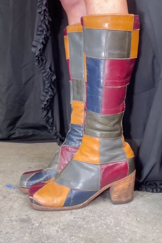 Stivali Go-go con tacco spesso in pelle patchwork multicolore [Pre-ordine]
