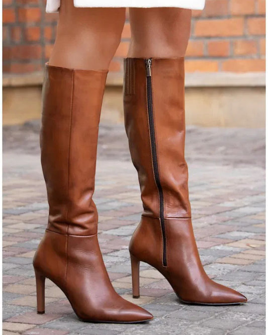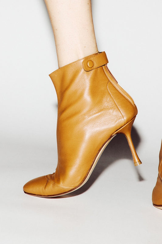Stivaletti con tacco a spillo in pelle di cammello [Pre-ordine]