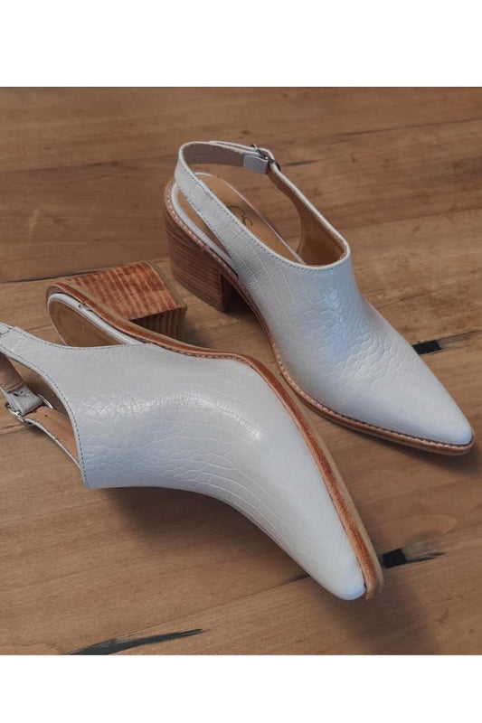 Scarpe con tacco a blocco con cinturino posteriore e stampa coccodrillo bianca [Pre-ordine]