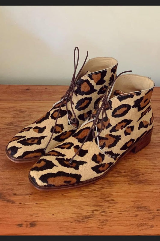 Stivaletti Oxford con lacci in pelle scamosciata con stampa leopardata [Pre-ordine]