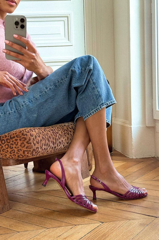 Scarpe con tacco a spillo viola con punta aperta e cinturino posteriore [Pre-ordine]