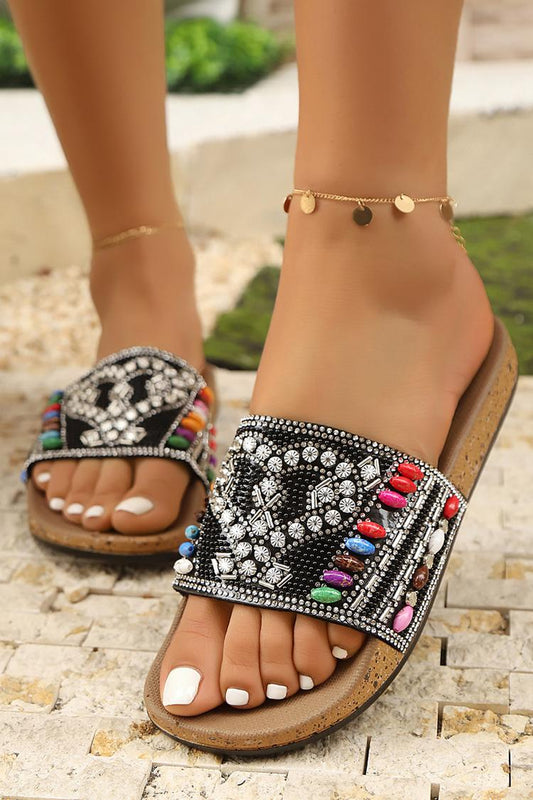 Ciabatte da spiaggia casual con plateau e punta rotonda con decorazioni in strass multicolor