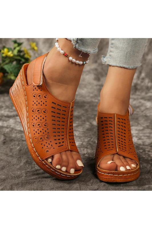 Sandali con zeppa e cinturino posteriore casual, con punta tonda e traforata, tinta unita