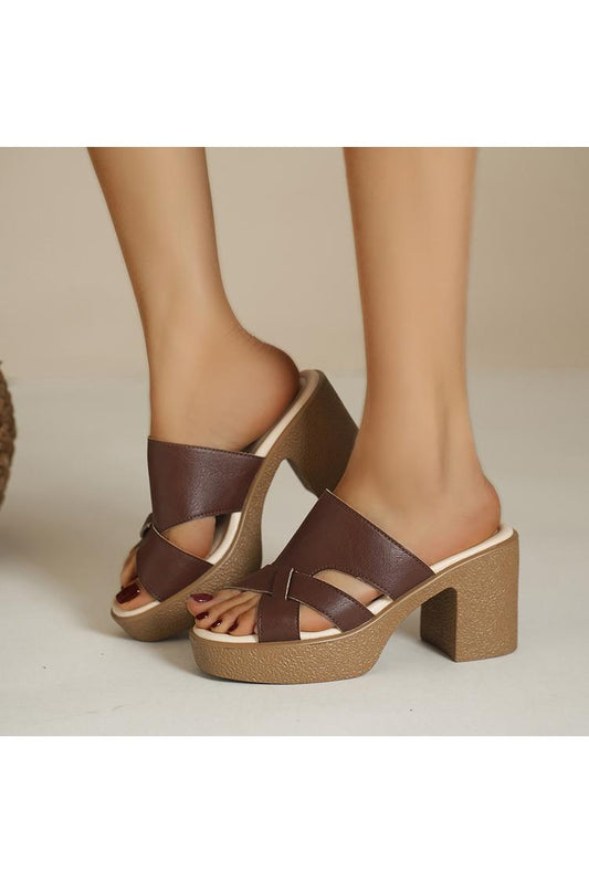 Sandali casual con tacco, punta tonda, tinta unita, con ritaglio irregolare