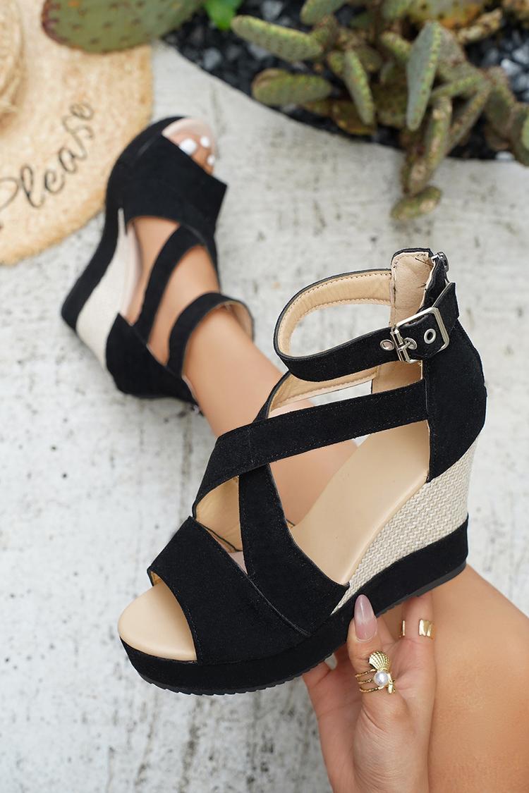 Sandali con zeppa casual con punta aperta, fibbia e cinturino alla caviglia, color block