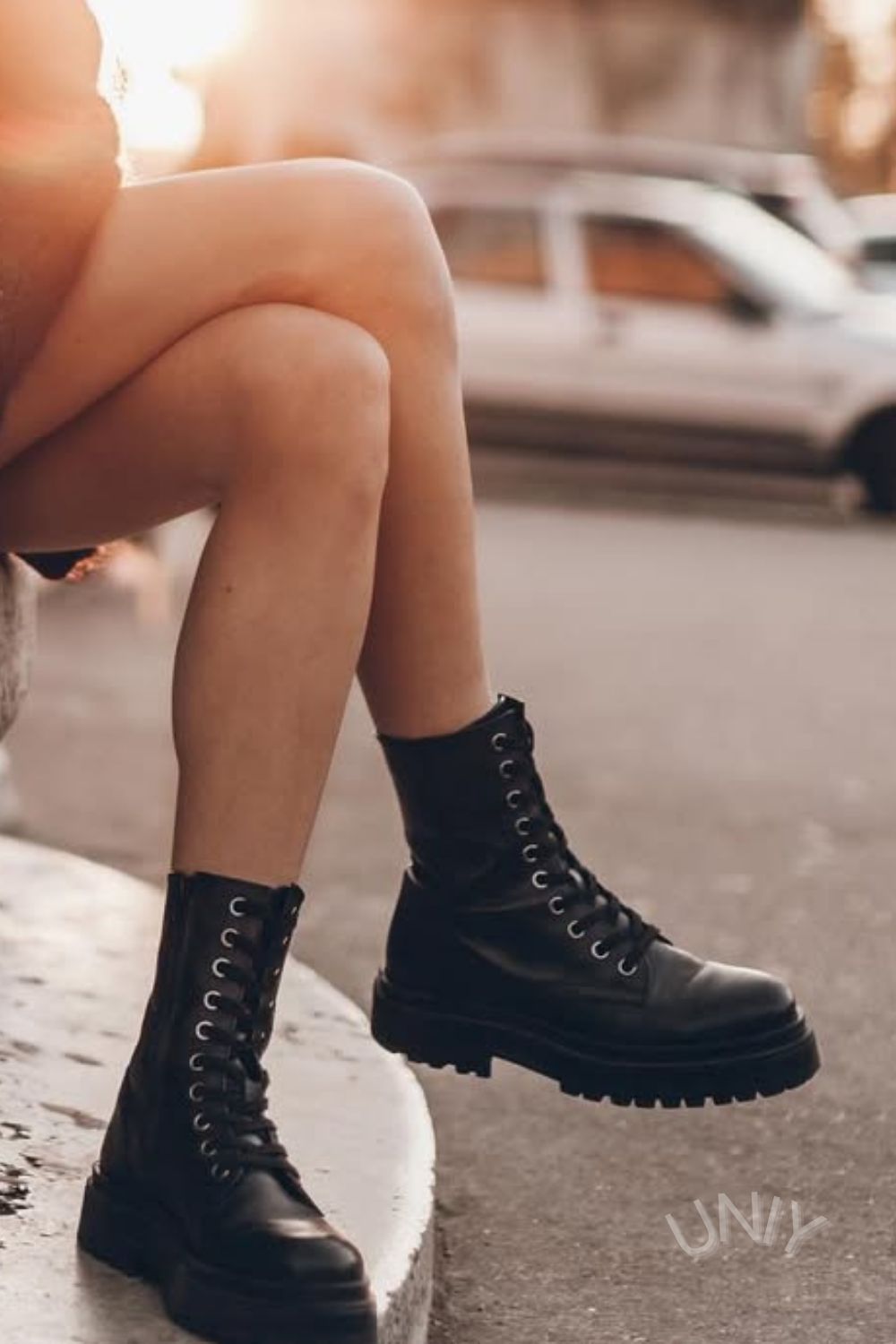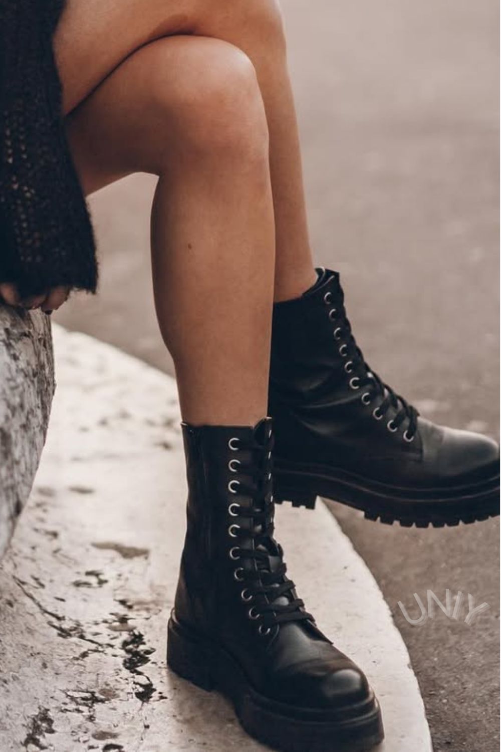 Stivali con plateau e lacci in pelle nera [Pre-ordine]