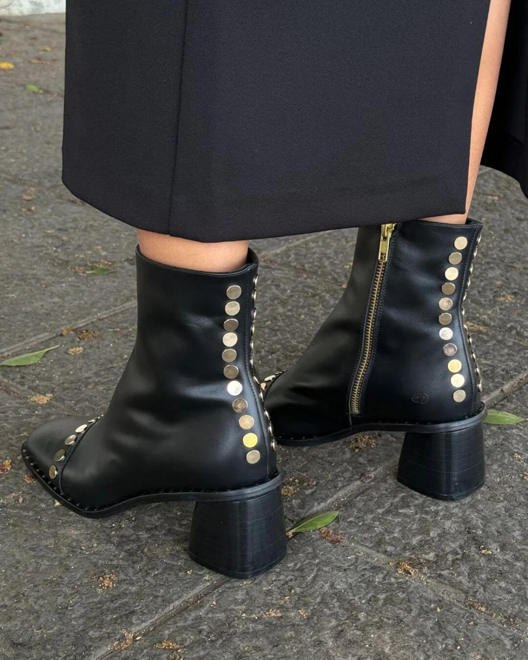 Stivali neri con punta quadrata e dettagli rivettati e tacco a blocco [Pre-ordine]