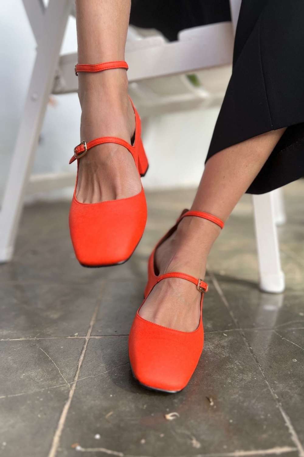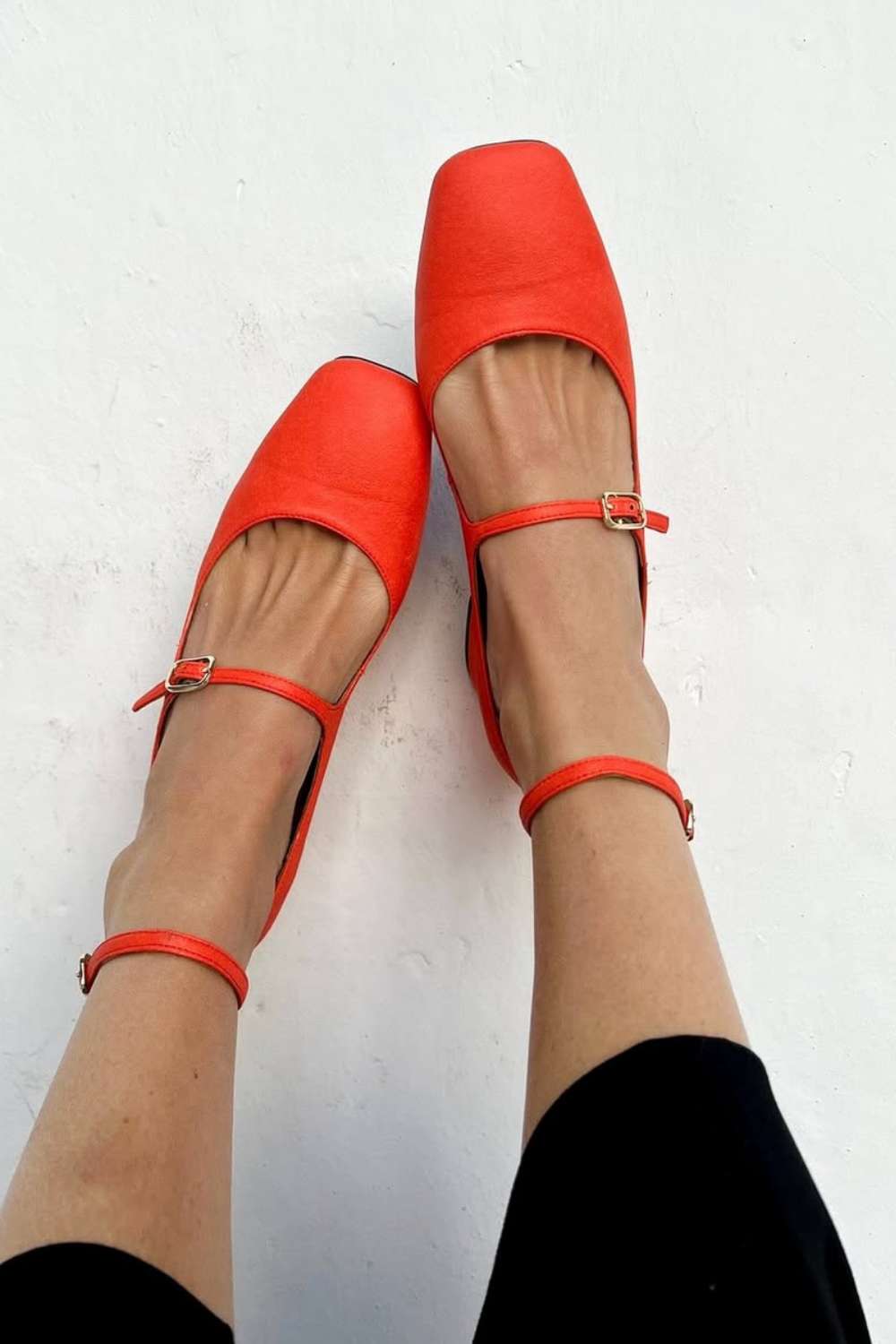Ballerine con cinturino alla caviglia e punta quadrata arancione brillante [Pre-ordine]