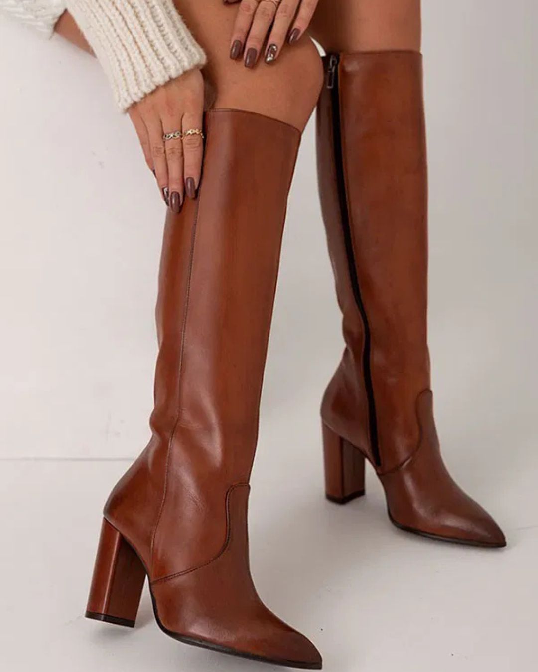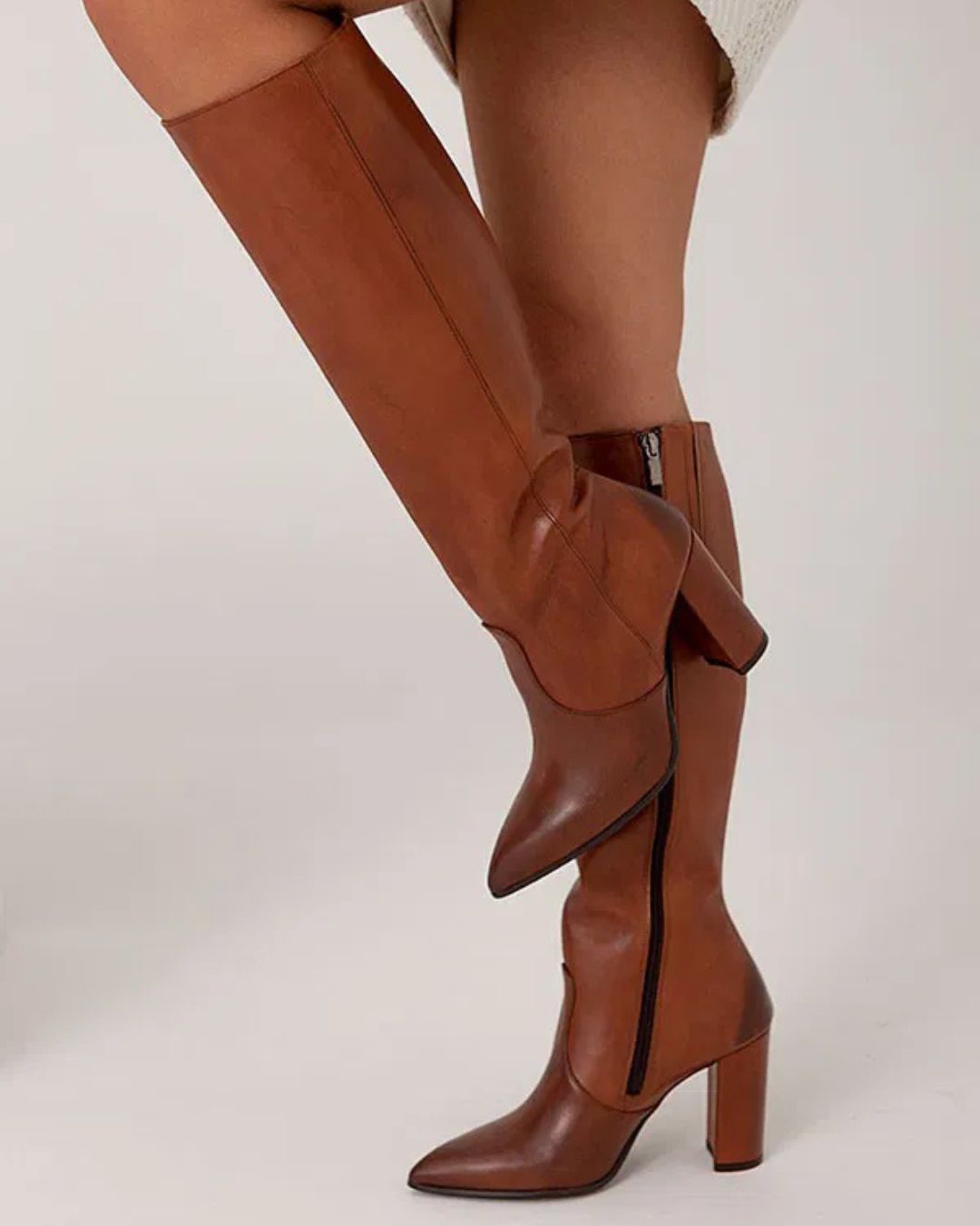 Stivali classici marroni con punta a punta e tacco a blocco alti fino al ginocchio [Pre-ordine]