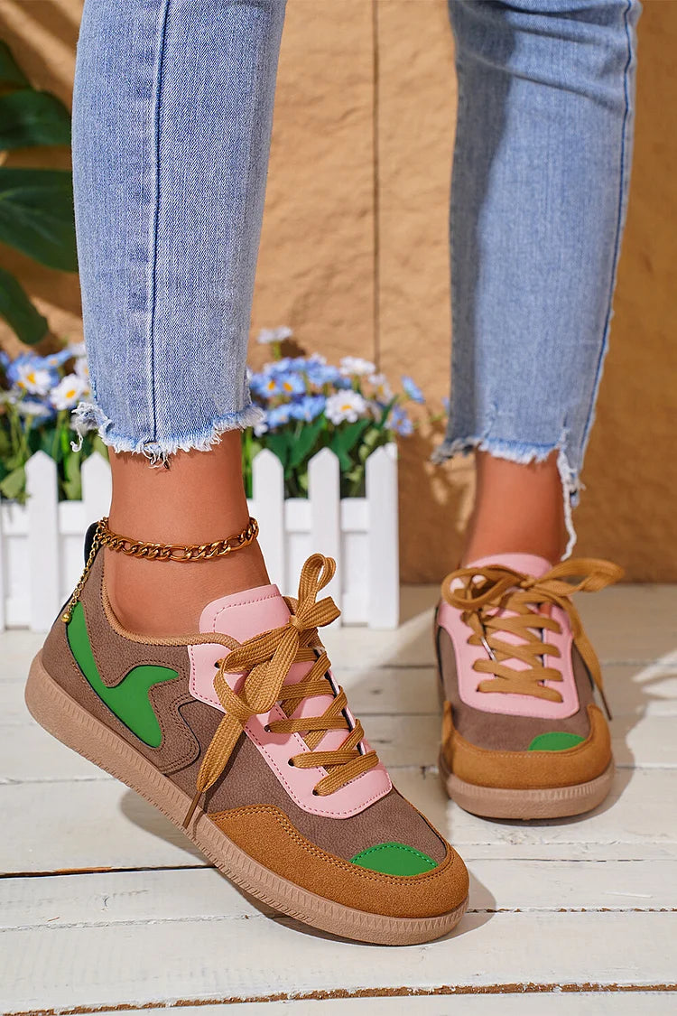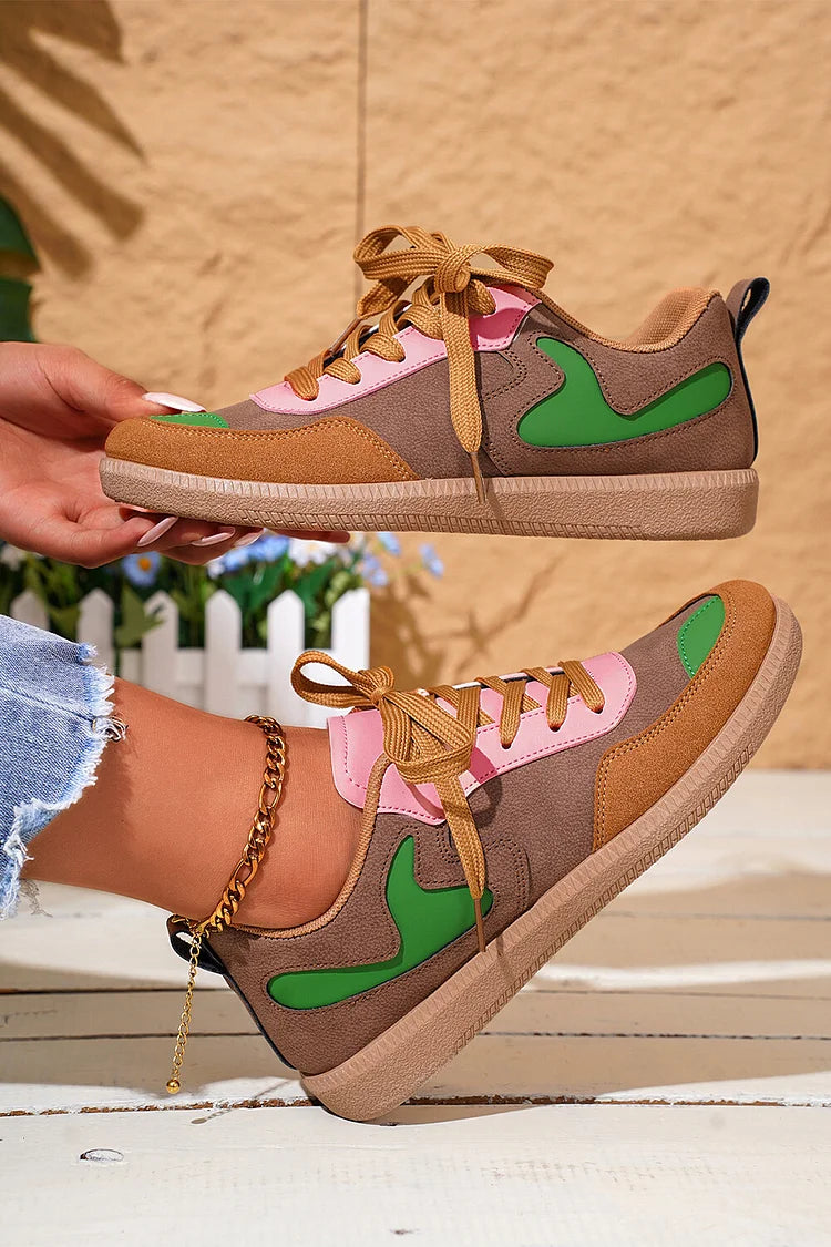 Sneakers casual con lacci, punta rotonda e suola morbida, a blocchi di colore