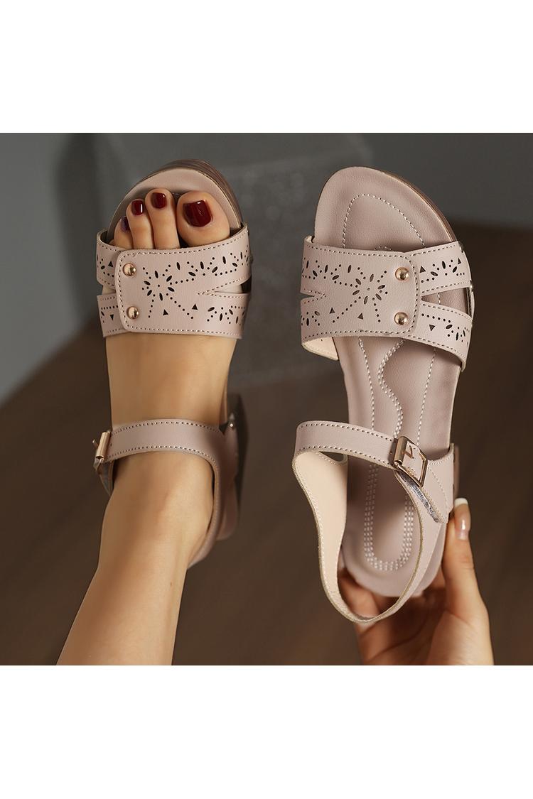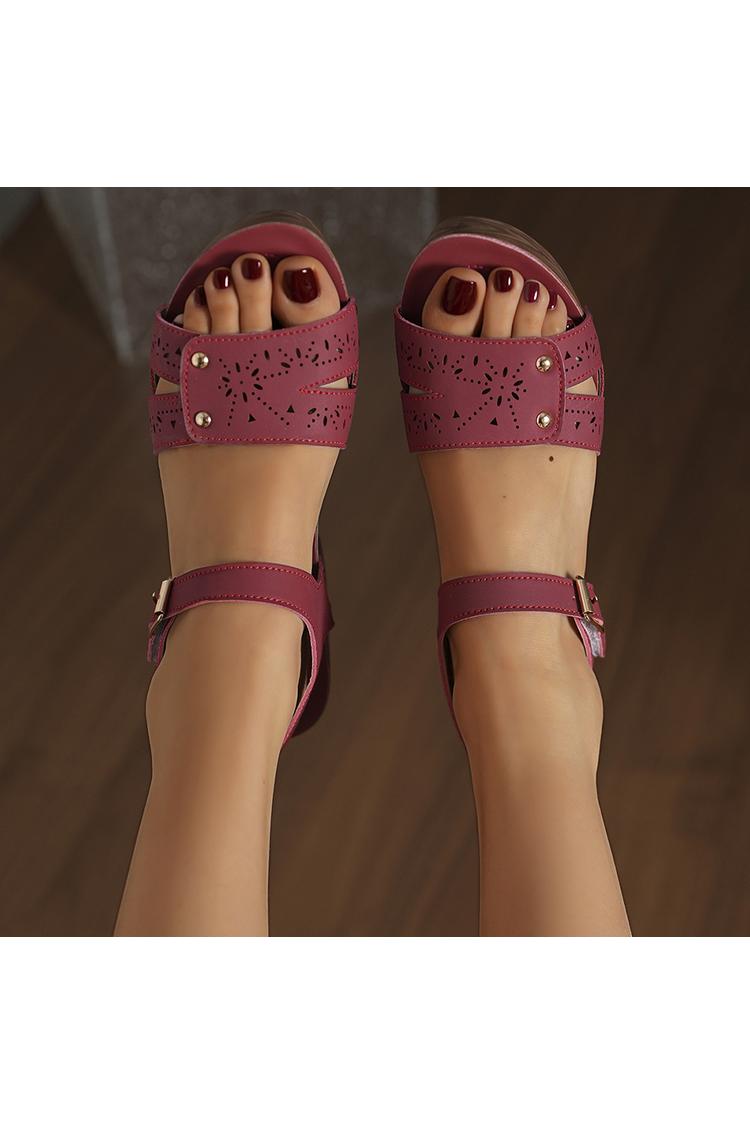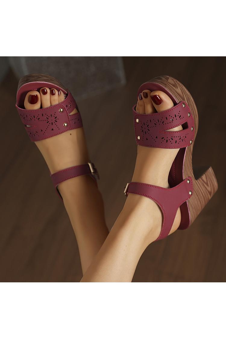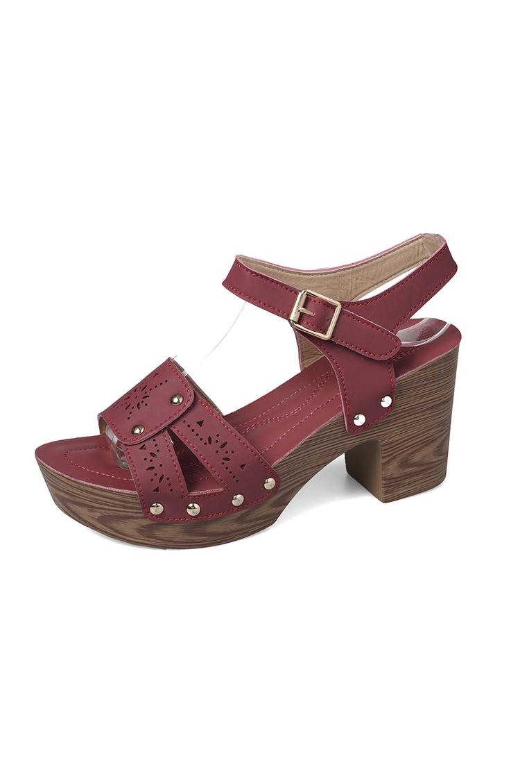 Sandali casual con tacco, punta tonda, tinta unita, con borchie in metallo traforate