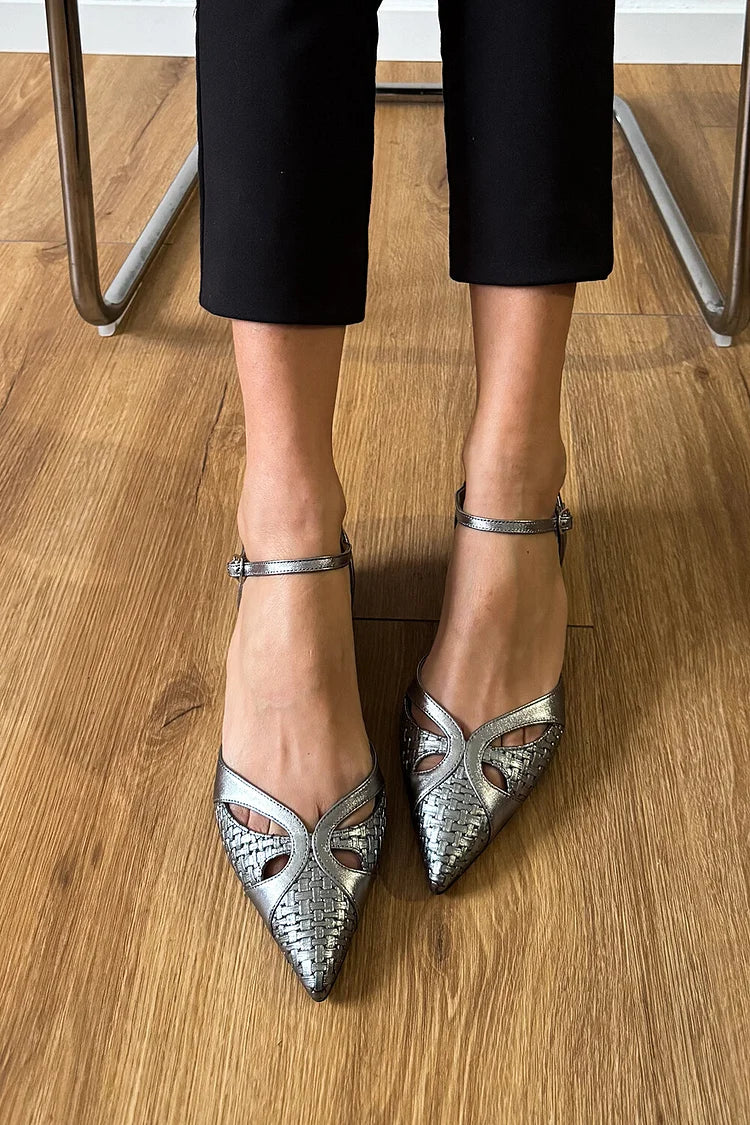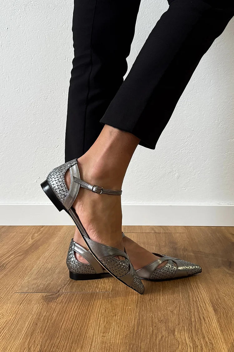 Ballerine argentate con punta a punta e lucentezza metallica traforata