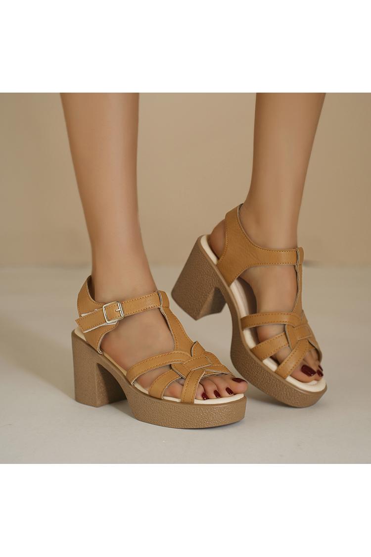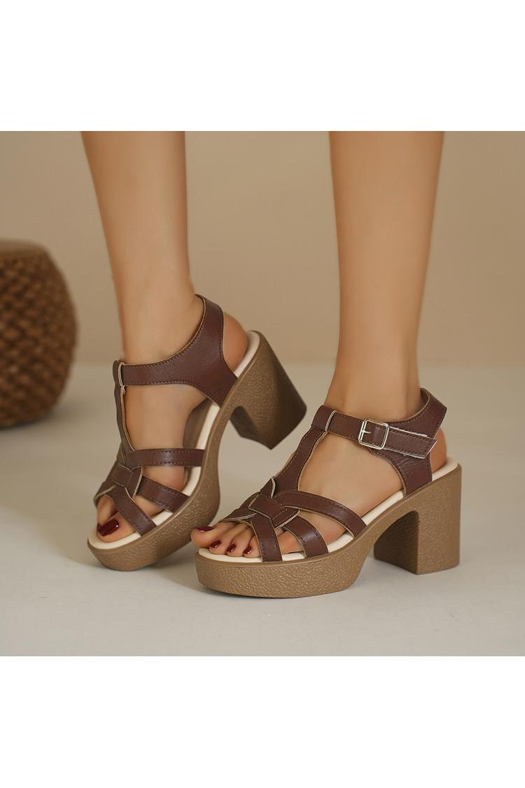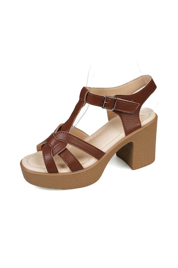 Tacchi bassi casual con cinturino marrone e fibbia chunky