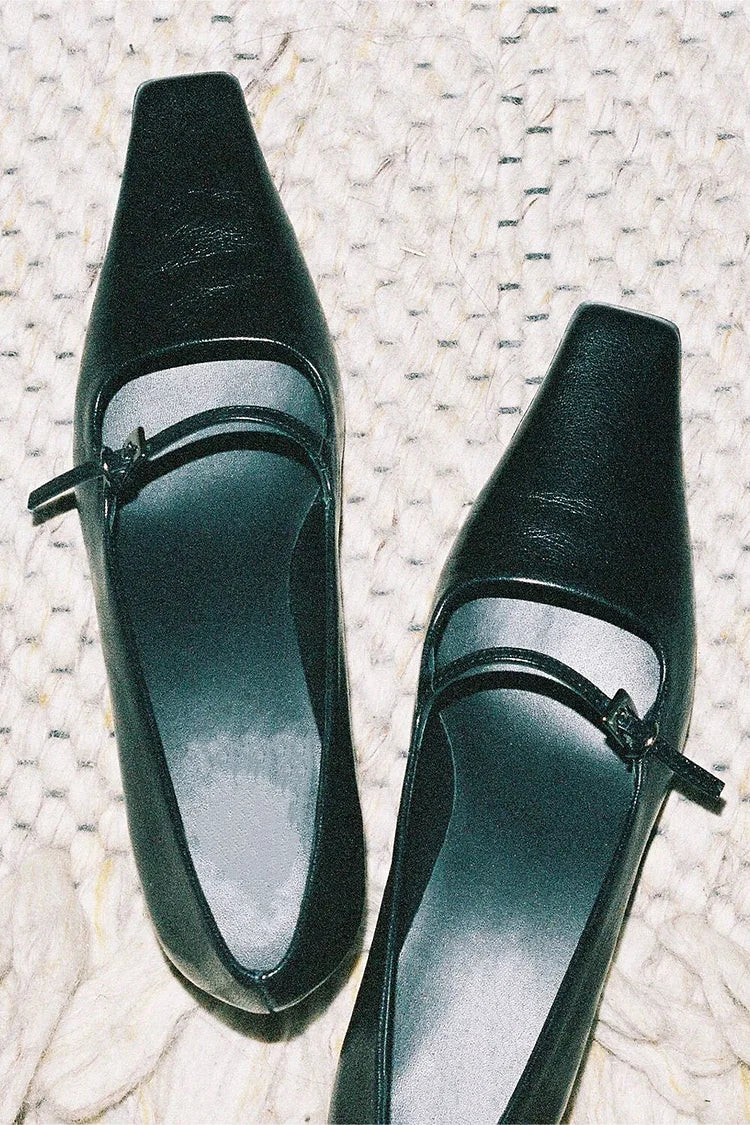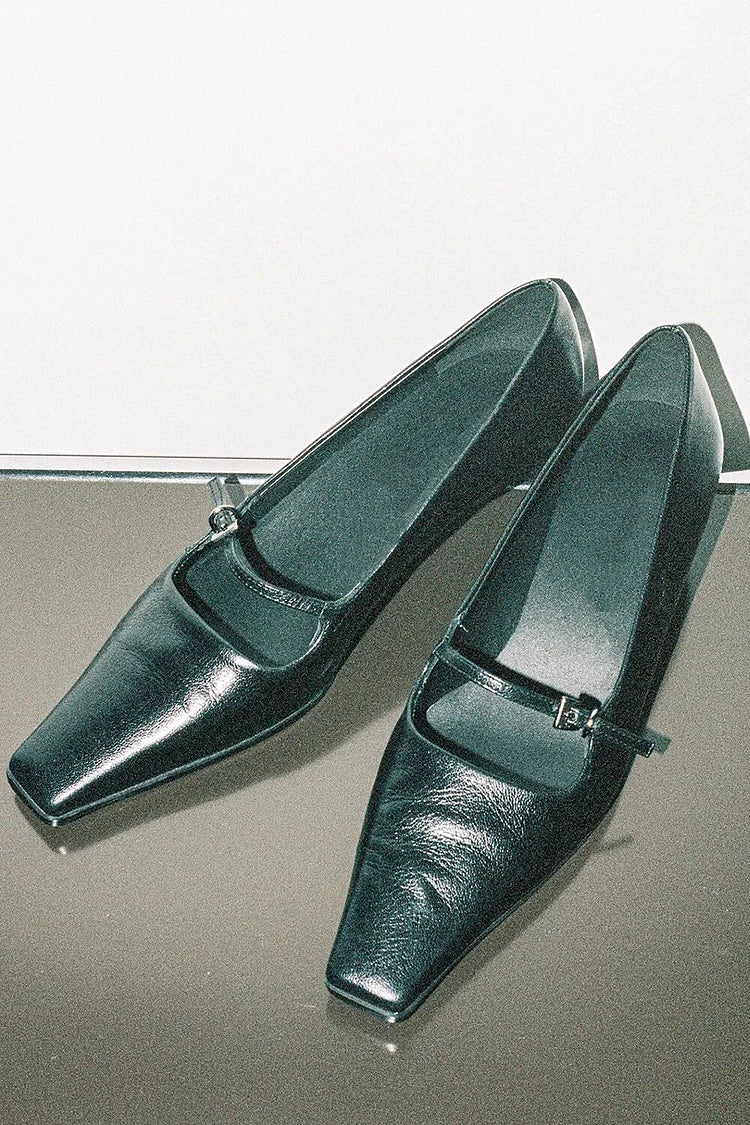 Ballerine con punta quadrata morbida e fibbia quadrata in velluto