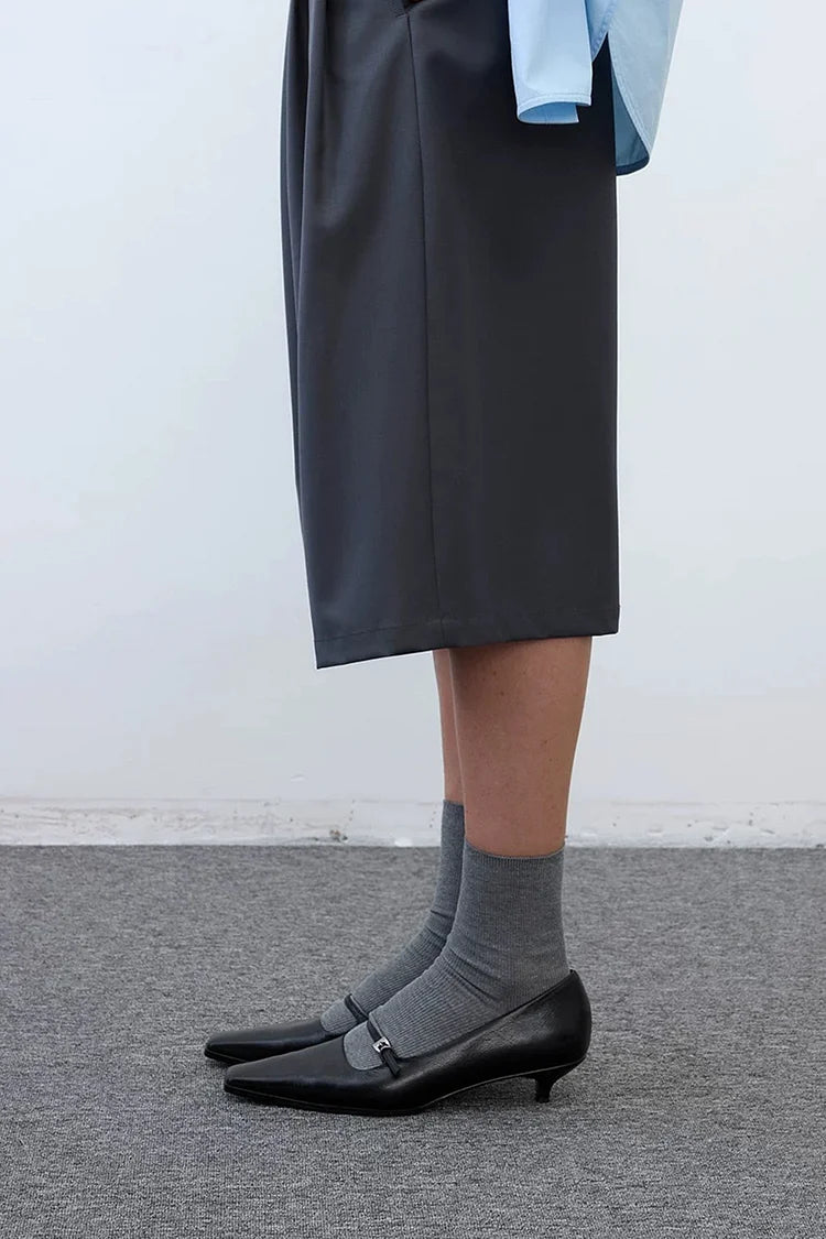 Cinturino alla caviglia, fibbia, punta affilata, tacco a spillo nero