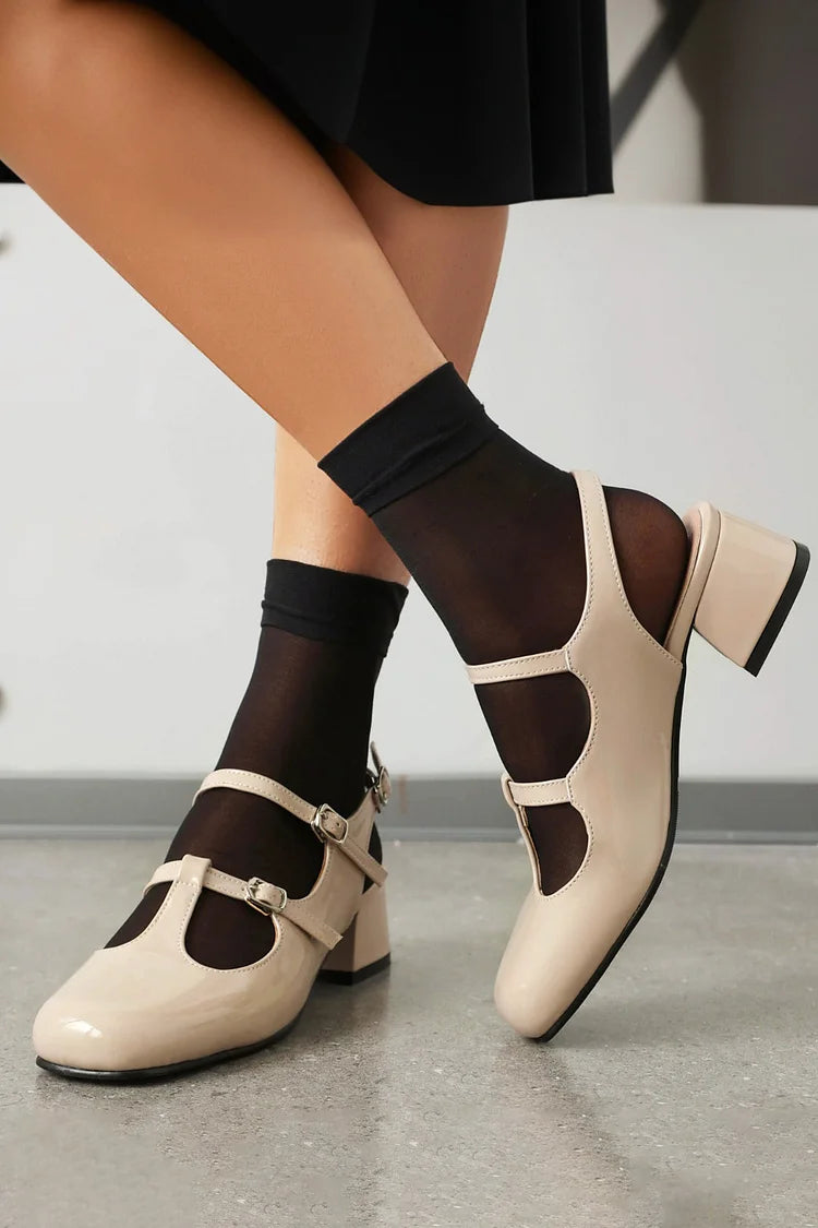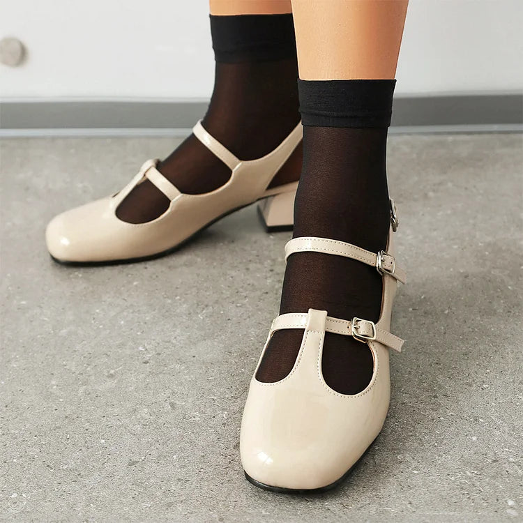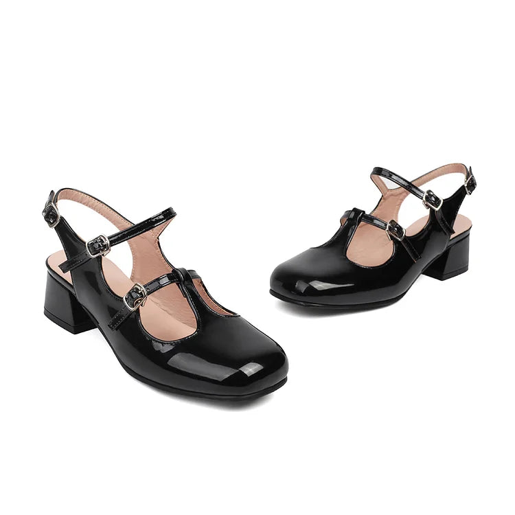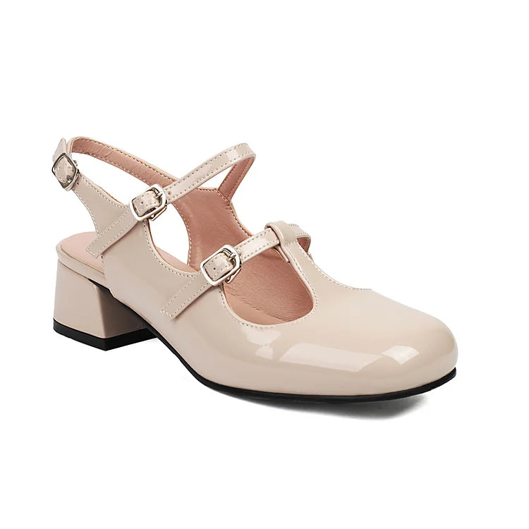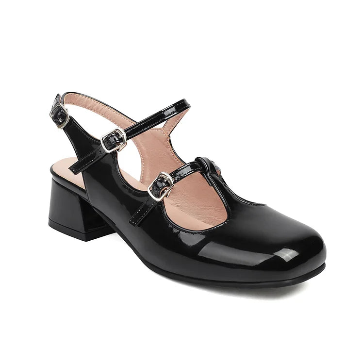 Cinghie sul collo del piede, fibbie, tinta unita, punta quadrata, cinturino posteriore, tacco grosso