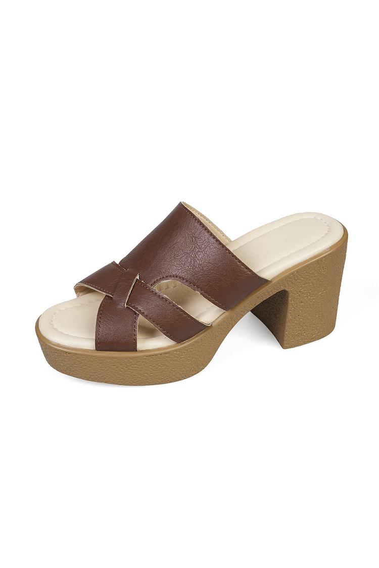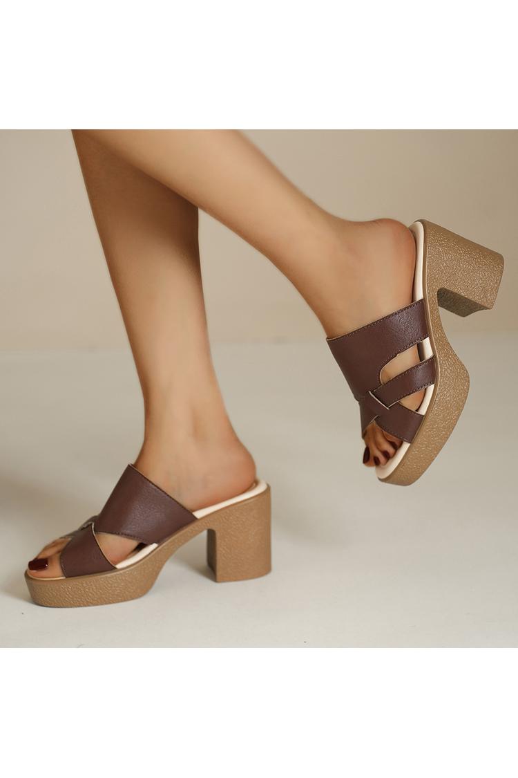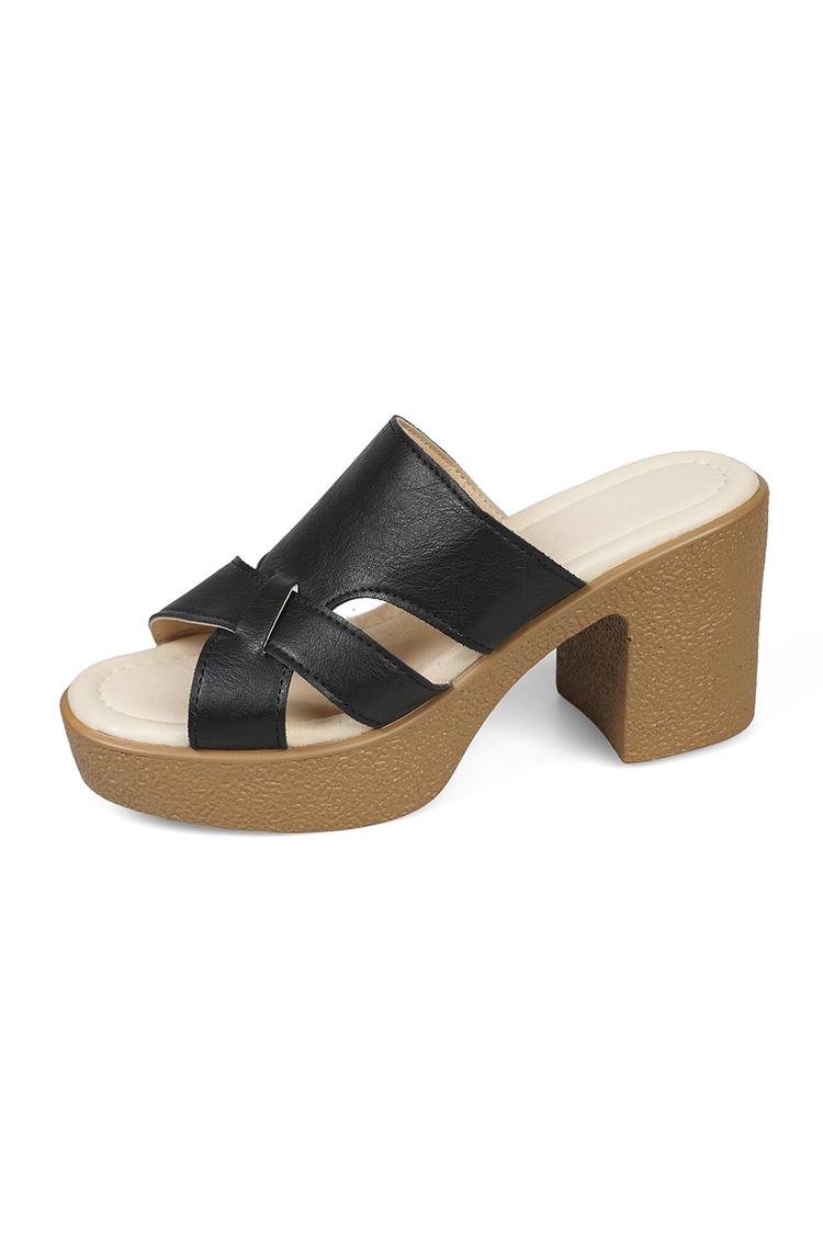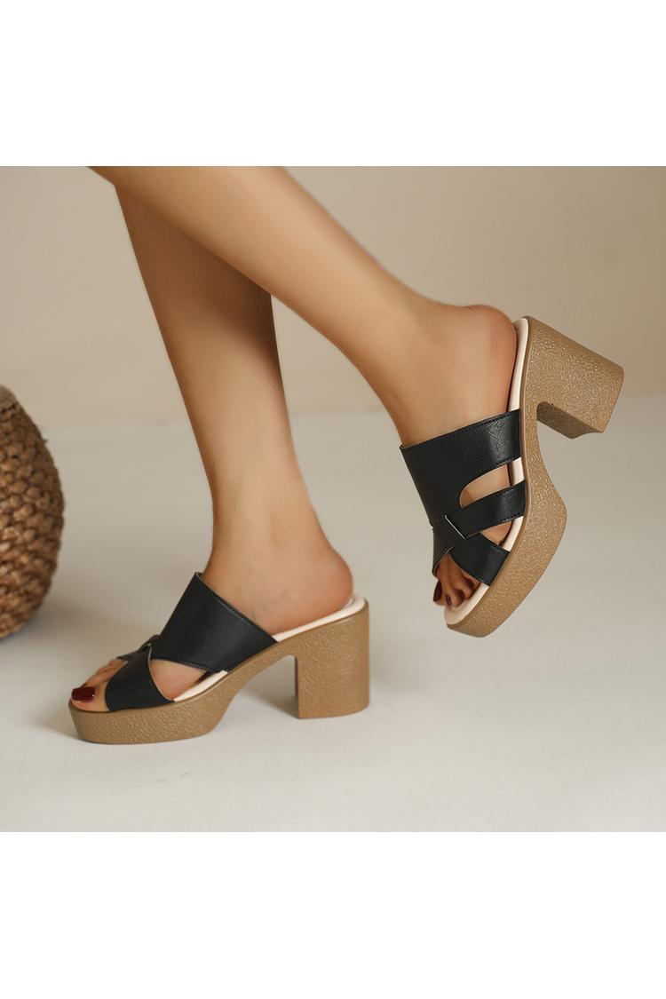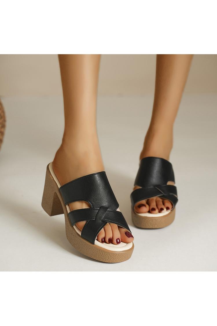 Sandali casual con tacco, punta tonda, tinta unita, con ritaglio irregolare