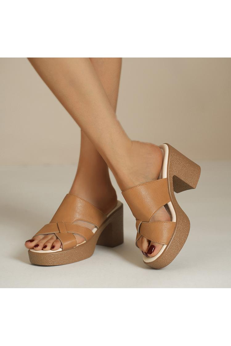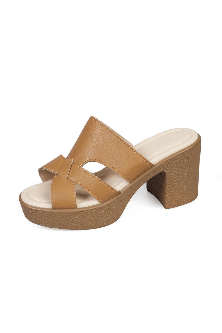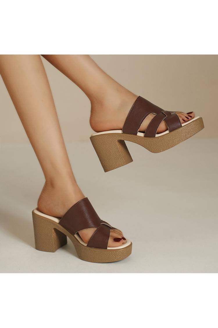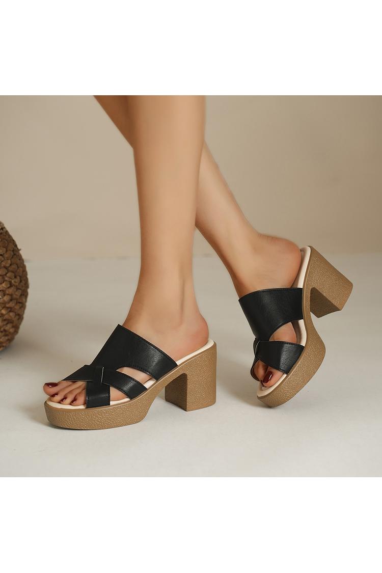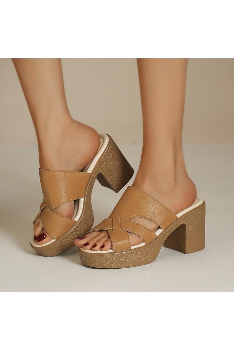 Sandali casual con tacco, punta tonda, tinta unita, con ritaglio irregolare