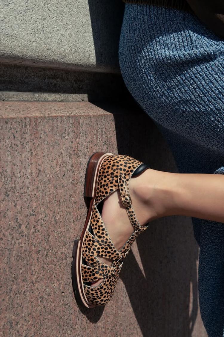 Sandali con cinturino a T traforato e stampa leopardata [Pre-ordine]