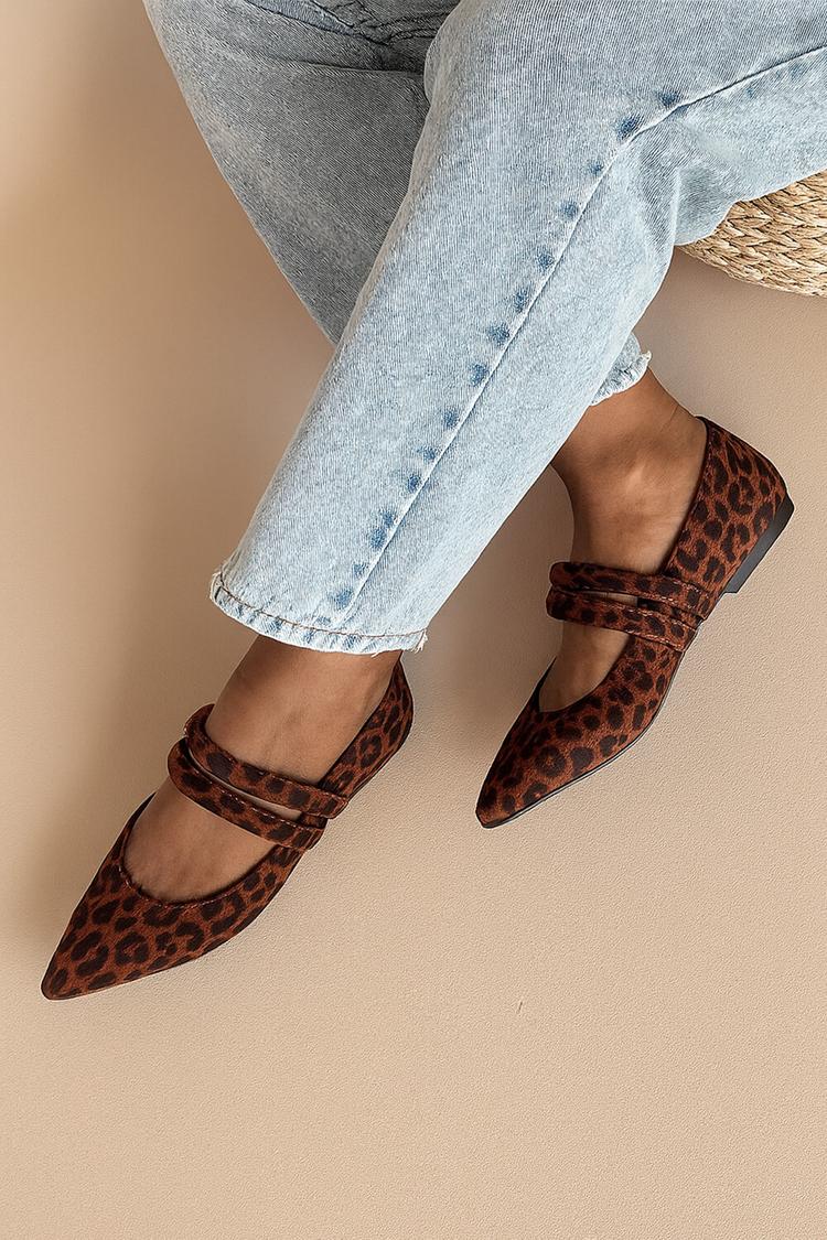 Ballerine marroni con punta a punta, cinturino sul collo del piede e stampa leopardata [Pre-ordine]