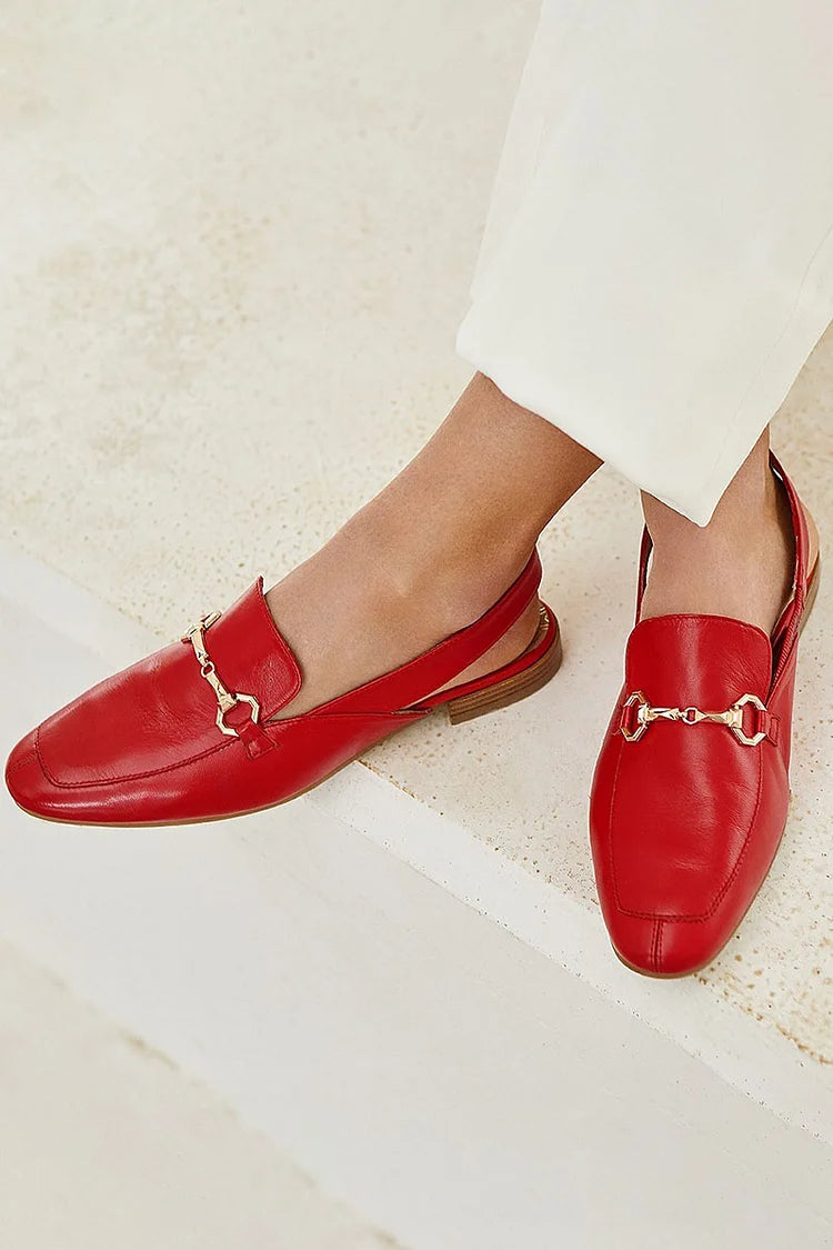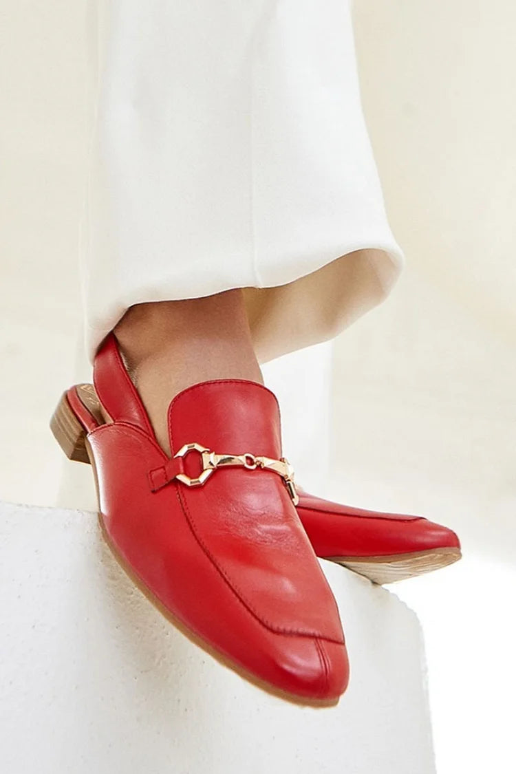 Eleganti mocassini con cinturino posteriore rotondo, punta rossa e fibbia metallica patchwork [Pre-ordine]