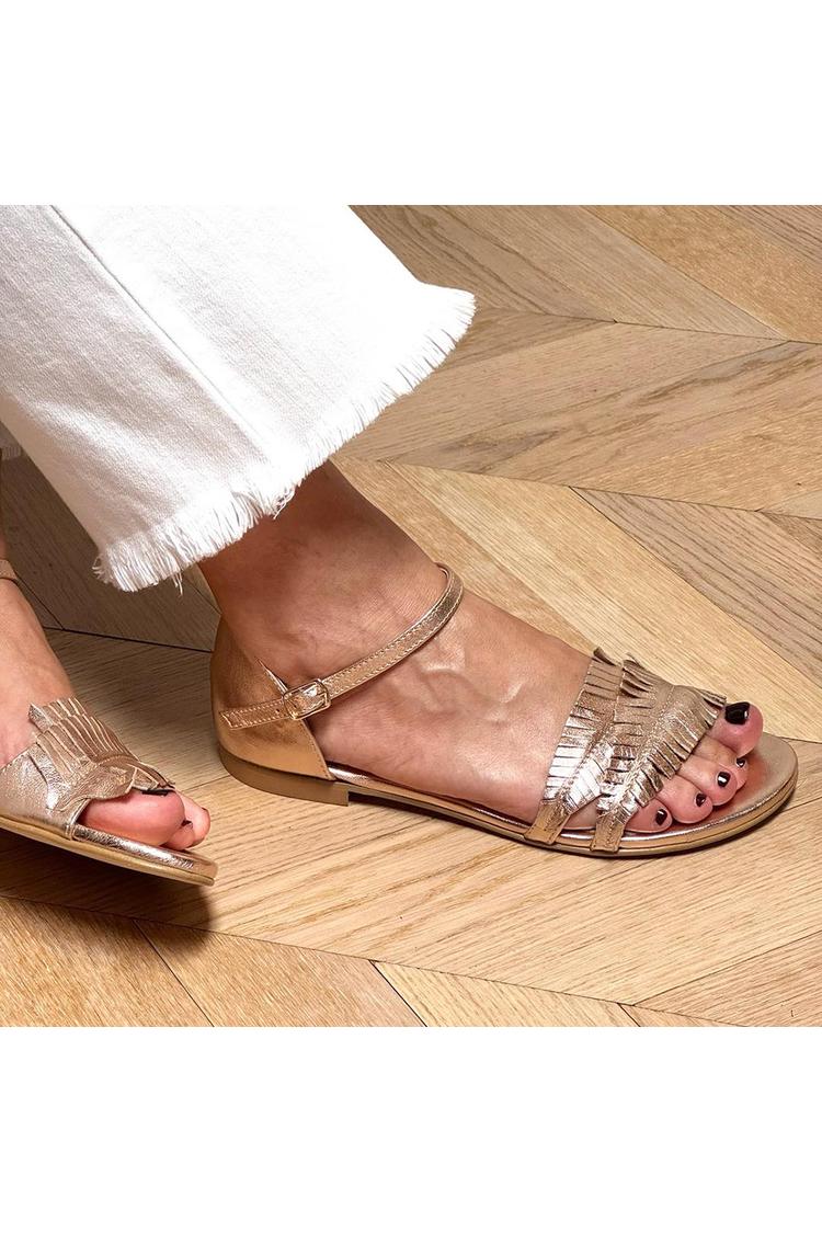 Sandali color champagne con punta tonda, cinturino alla caviglia e fibbia metallizzata [Pre-ordine]