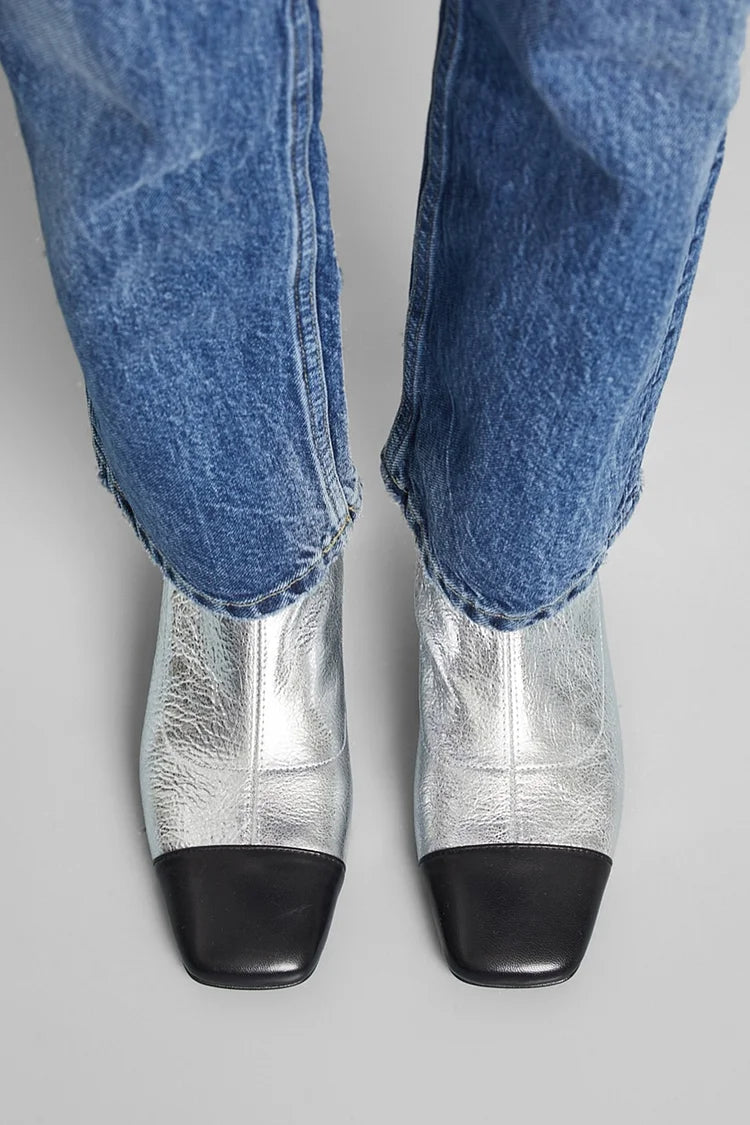 Stivaletti alla caviglia color block con punta quadrata e finitura metallizzata [Pre-ordine]
