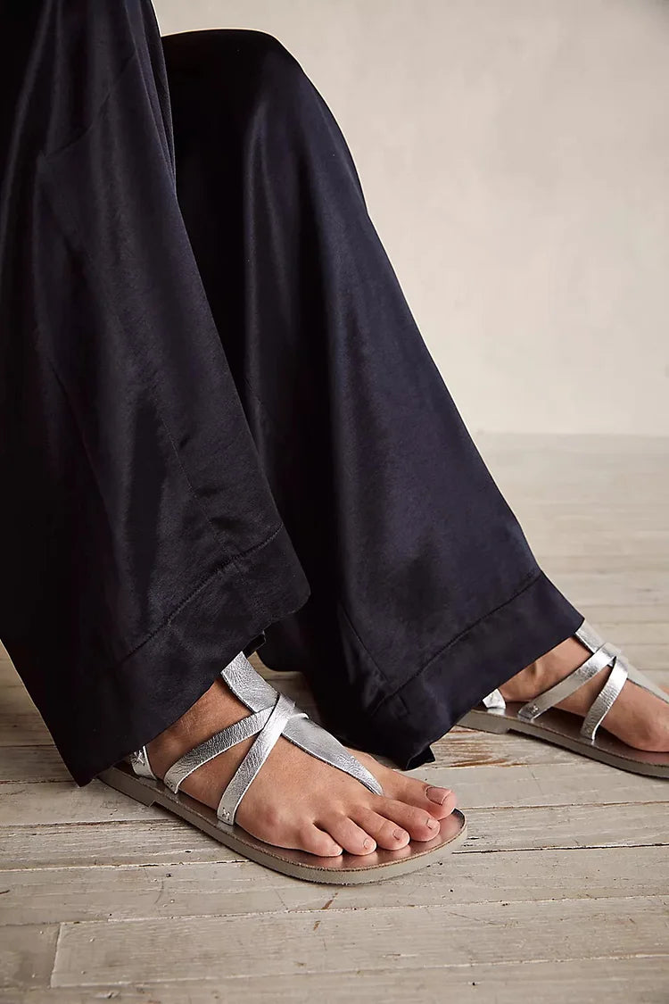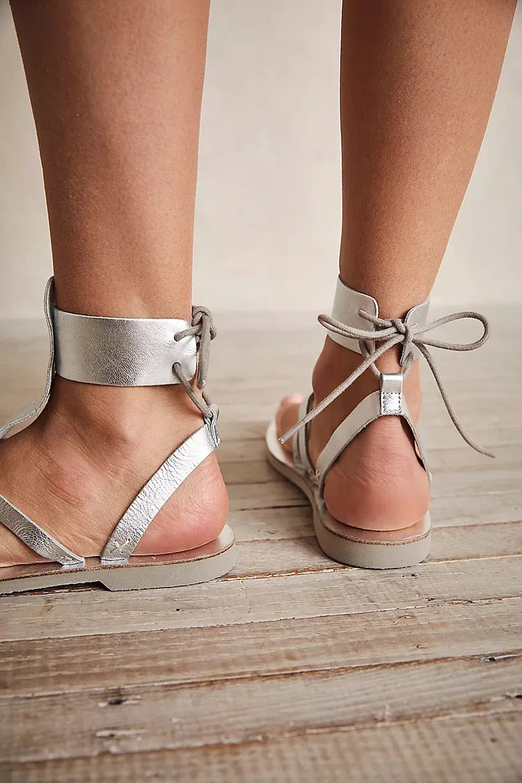 Sandali con cinturino incrociato e lacci color argento metallizzato [Pre-ordine]