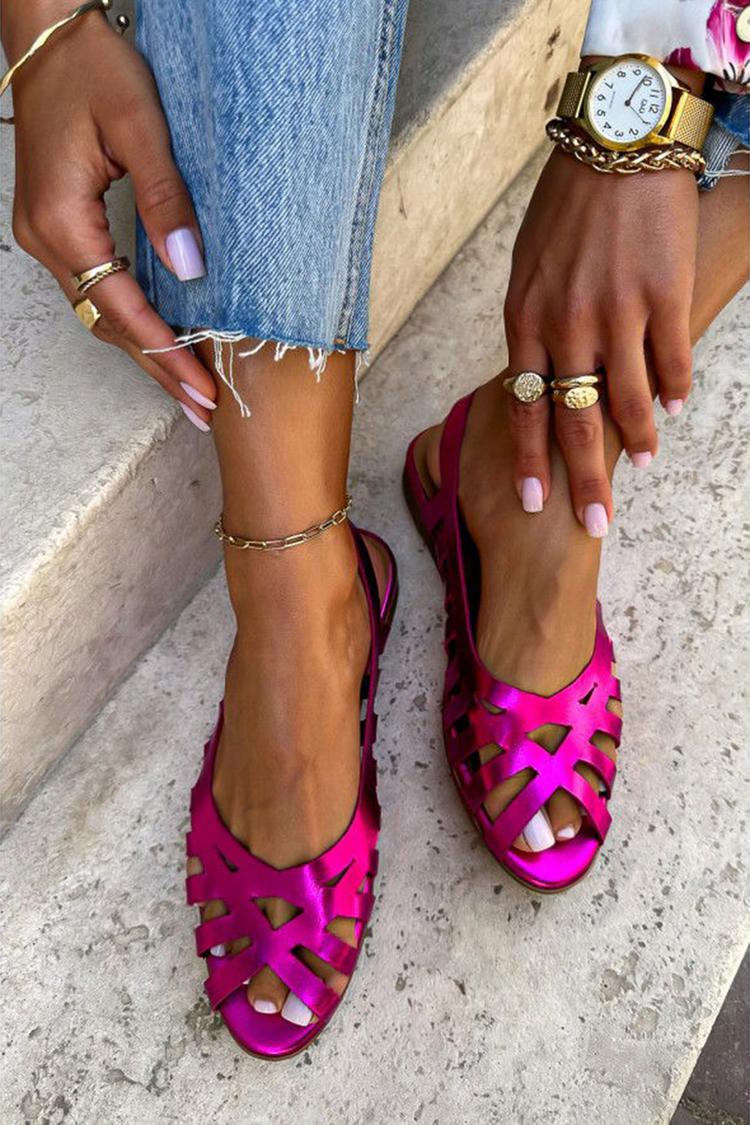 Sandali fucsia con punta aperta e traforata e lucentezza metallizzata [Pre-ordine]