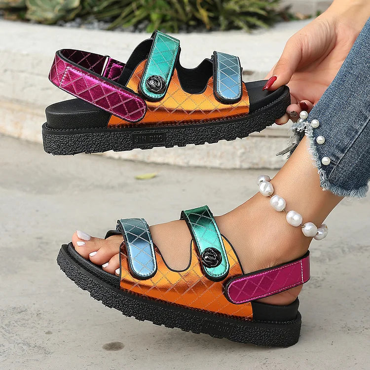 Sandali casual da spiaggia con punta rotonda multicolore metallizzata