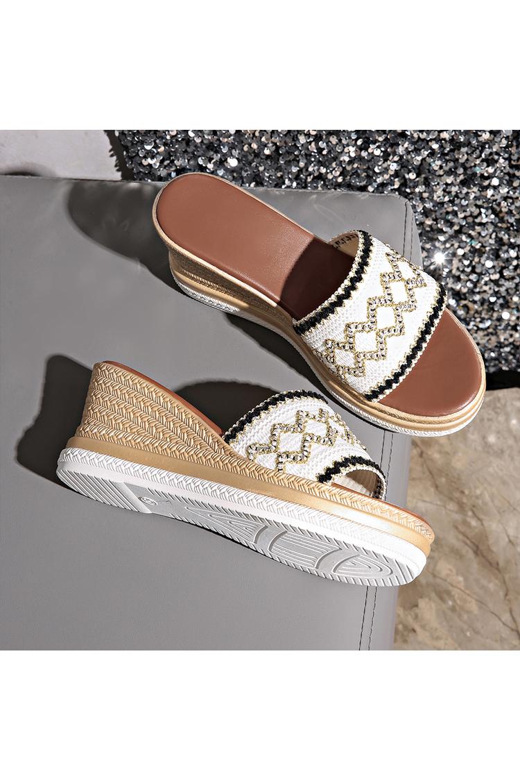 Pantofole casual con zeppa e punta rotonda in stile boho con motivo multicolore