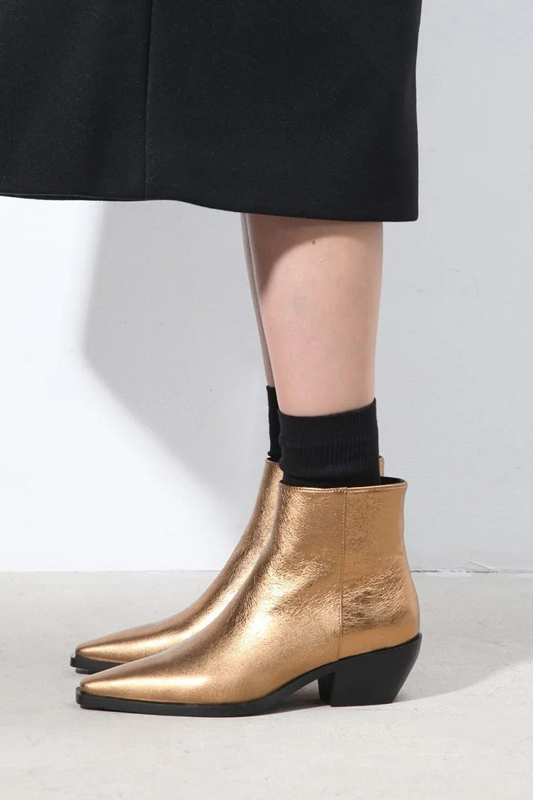 Stivaletti alla caviglia con punta affilata e finitura oro metallizzato [Pre-ordine]