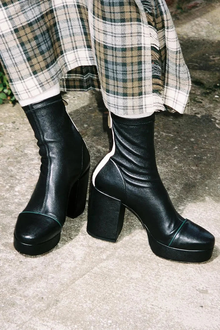 Stivali neri casual con punta tonda, cerniera e tacco spesso [Pre-ordine]