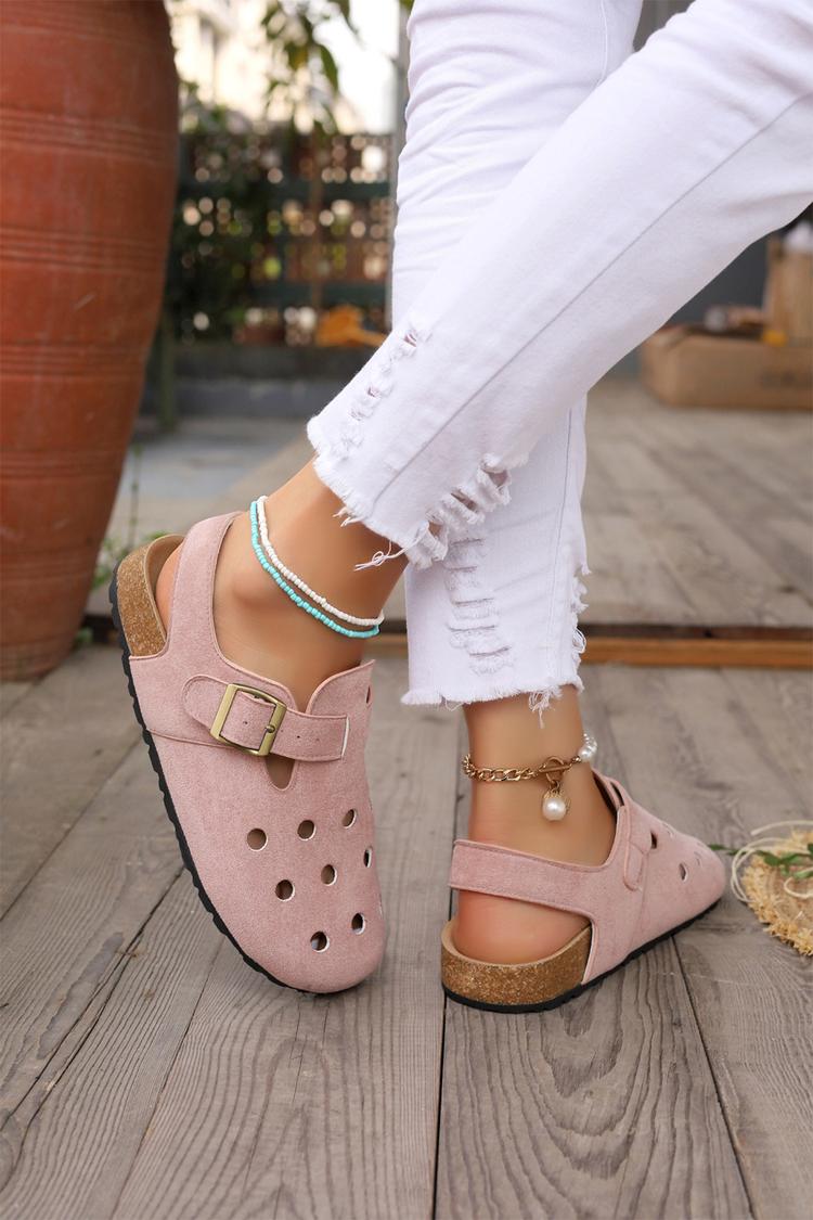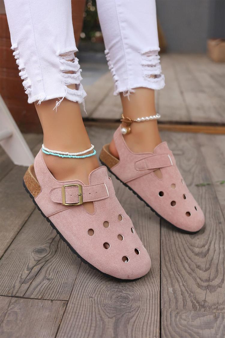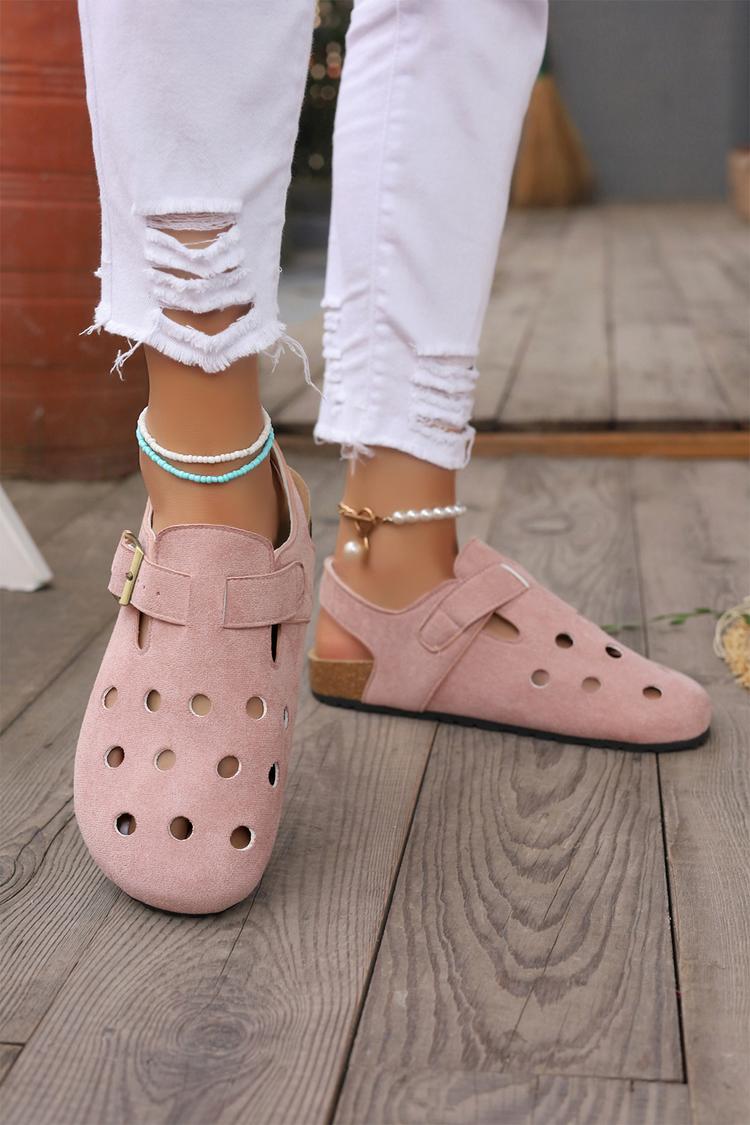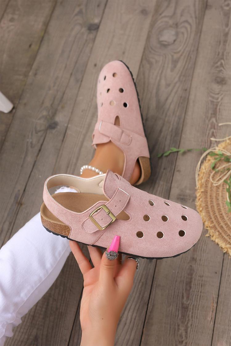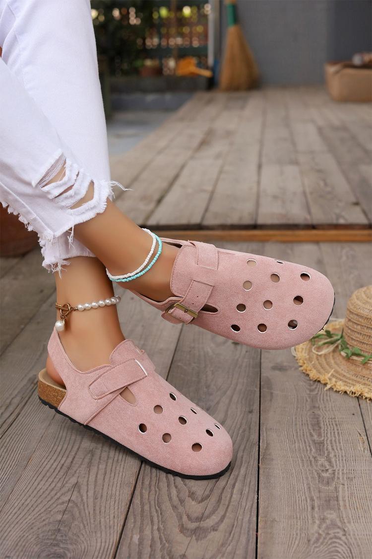 Sandali casual con cinturino posteriore e punta tonda traforata, tinta unita