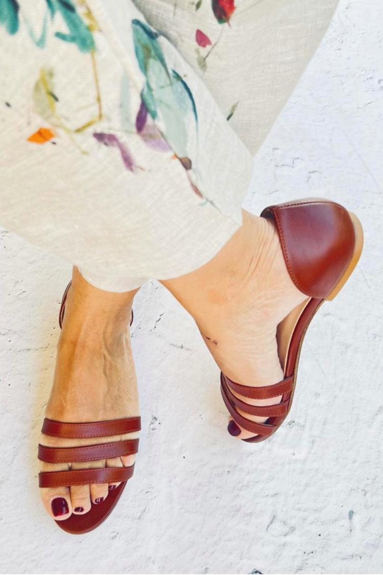Sandali marroni con punta tonda e cinturini multipli in tinta unita [Pre-ordine]