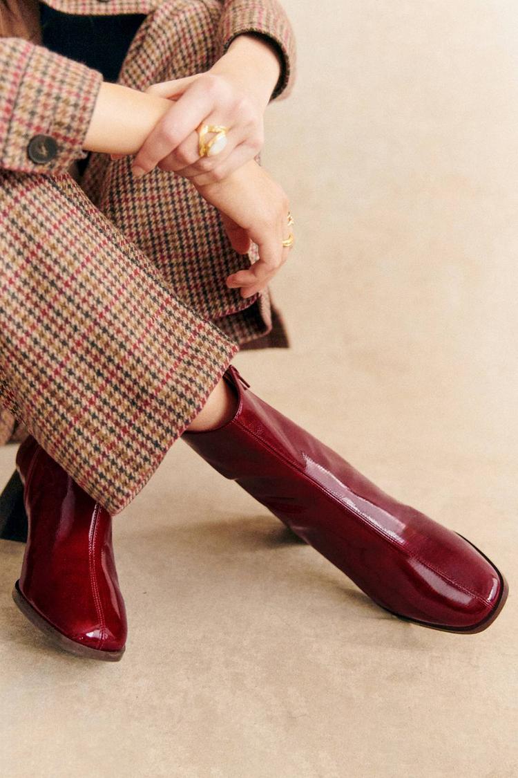 Stivali bordeaux con punta quadrata, cerniera tinta unita e tacco spesso [Pre-ordine]