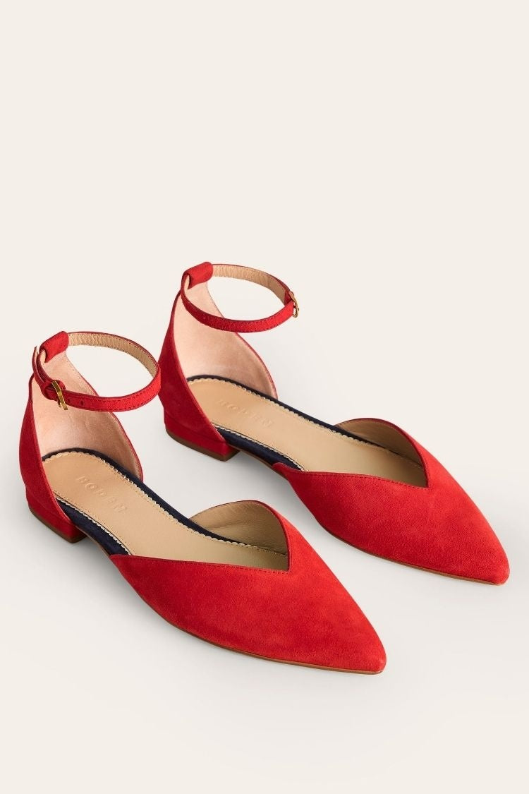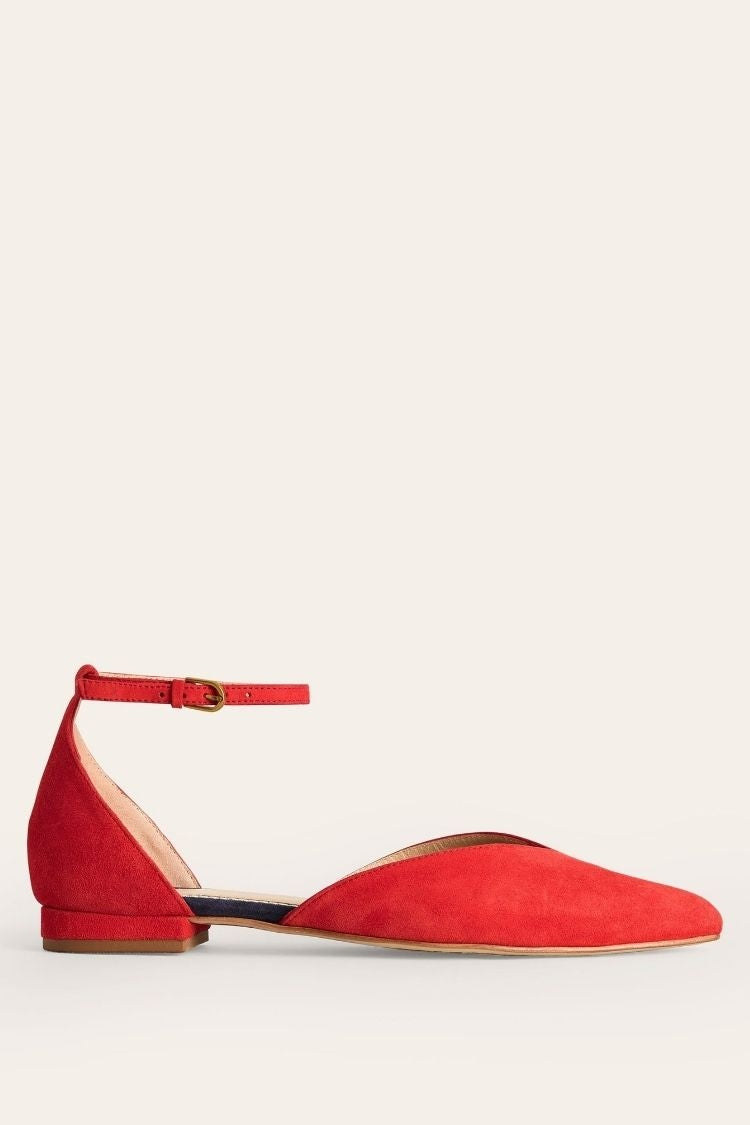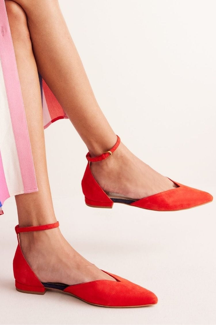 Ballerine Dorsay a punta in pelle scamosciata rossa con cinturino alla caviglia [Pre-ordine]