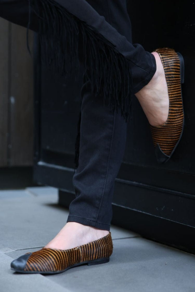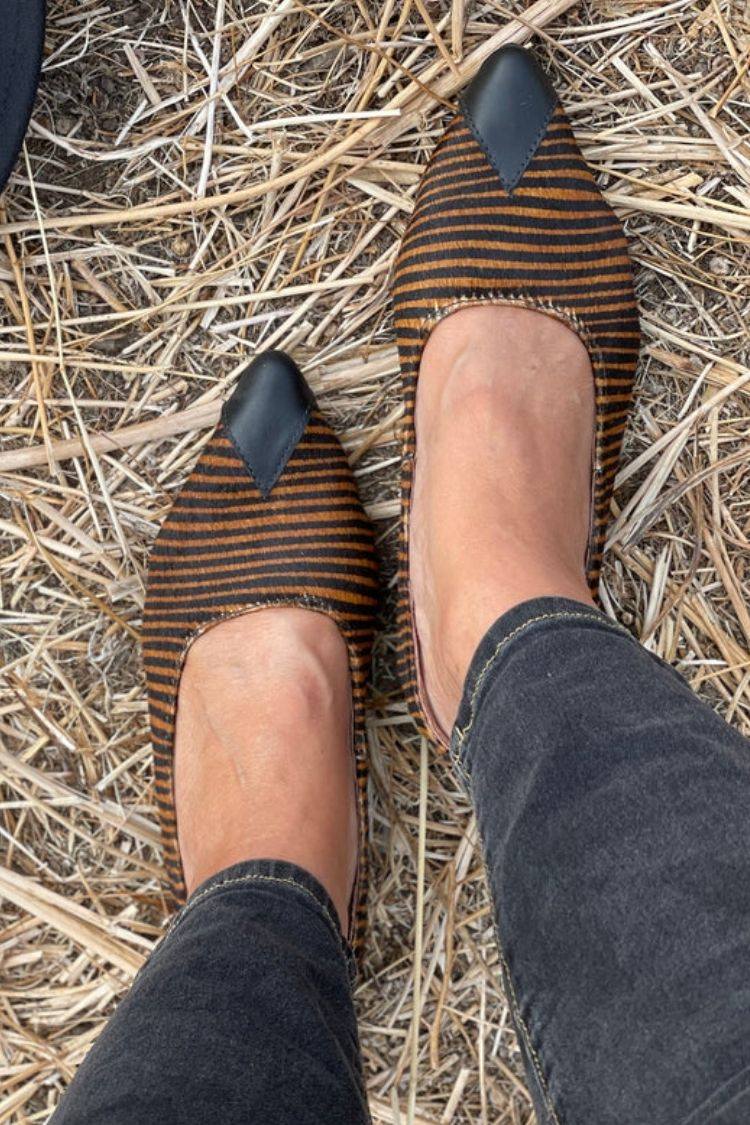 Ballerine a punta con motivo a righe in pelle scamosciata e punta a contrasto [Pre-ordine]