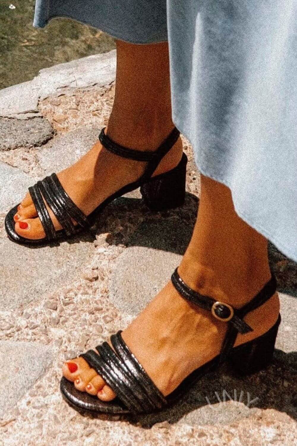 Sandali con tacco a blocco, cinturino testurizzato e fibbia [Pre-ordine]