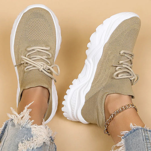Sneakers casual traspiranti in maglia tinta unita con lacci e punta tonda