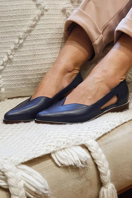 Scarpe basse casual slip-on blu navy con punta affilata e cut-out